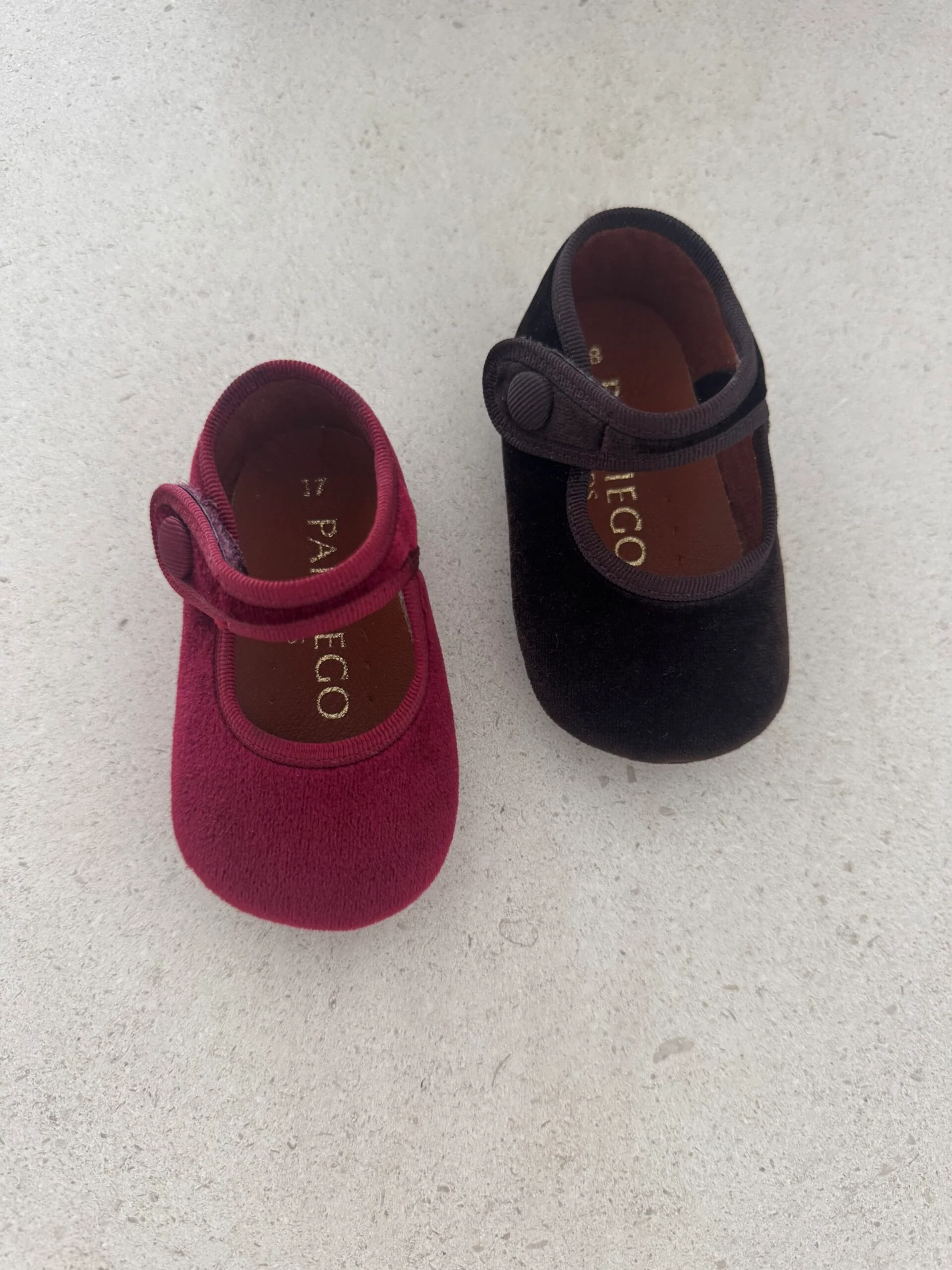 Badana de terciopelo para bebé con cierre de velcro simulando un botón forrado ideales para los bebés que todavía no caminan.