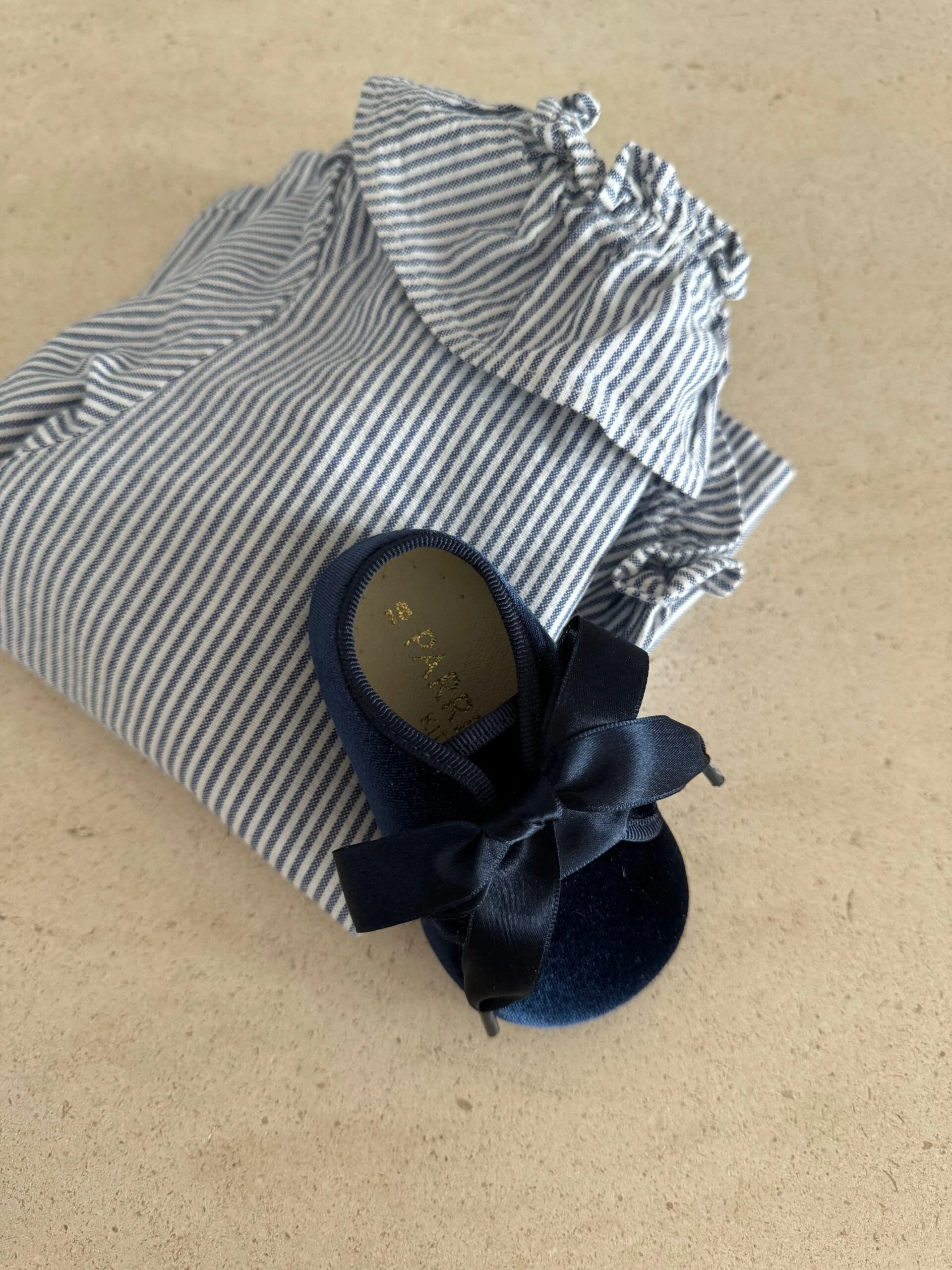 Badanas de terciopelo estilo blucher con lazada de faya al tono del ribete disponibles desde la talla 17 hasta la 20 en dos clásicos tonos: marino y botella.