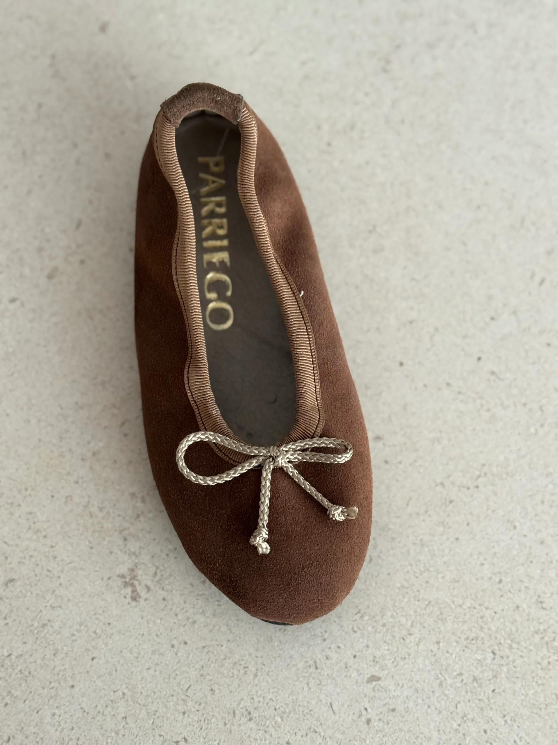 Bailarinas de serraje con suela de goma antideslizante para niñas disponible desde la talla 27 hasta la 40 en dos otoñales colores: camel y gris.