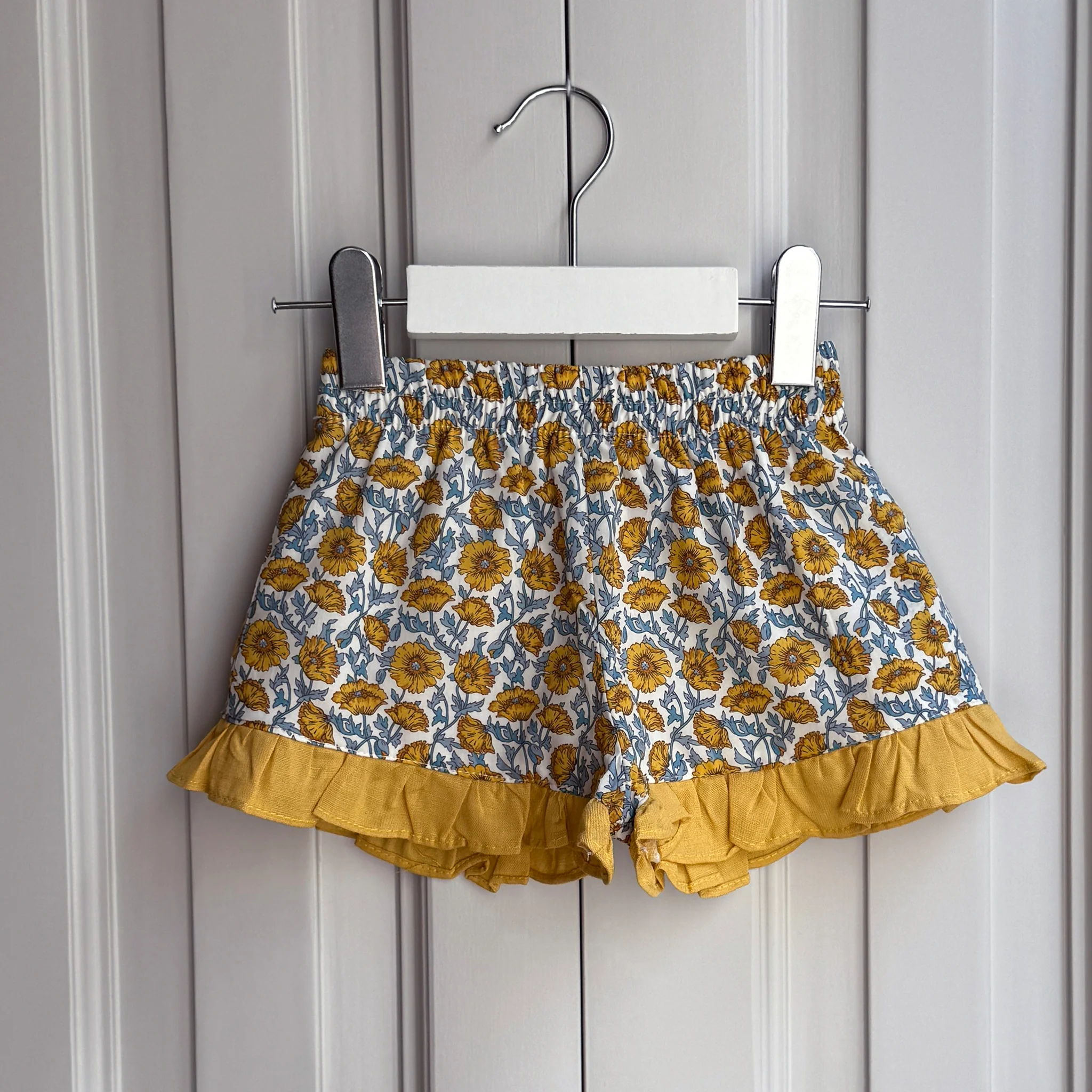 ¡Ya están aquí las bermudas más especiales! Confeccionada con tejido Liberty London y acabado con volante, esta bermuda será la prenda más utilizada de su armario.