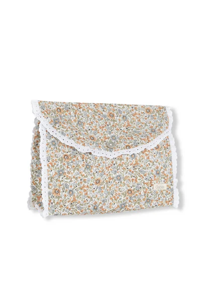 Bolsa de muda en nuestro estampado exclusivo, con botón de nácar y goma en el lateral.