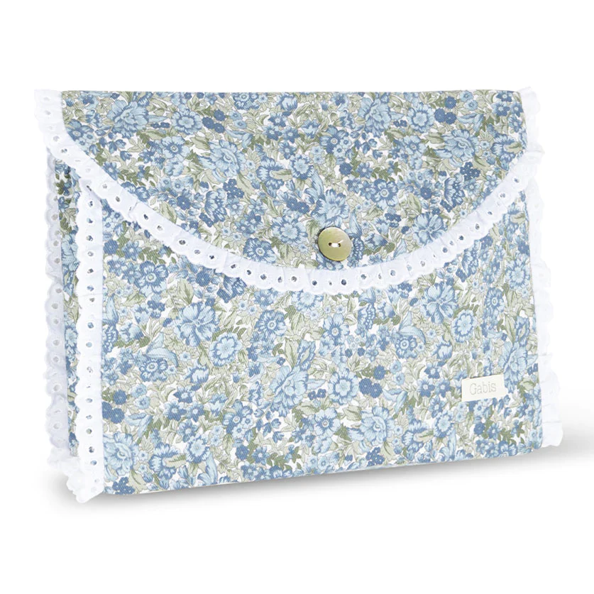 Bolsa de muda en nuestro estampado, con botón de nácar y goma en el lateral.