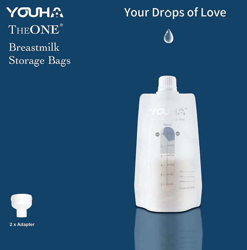 Bolsas de almacenamiento de leche materna con dos adaptadores