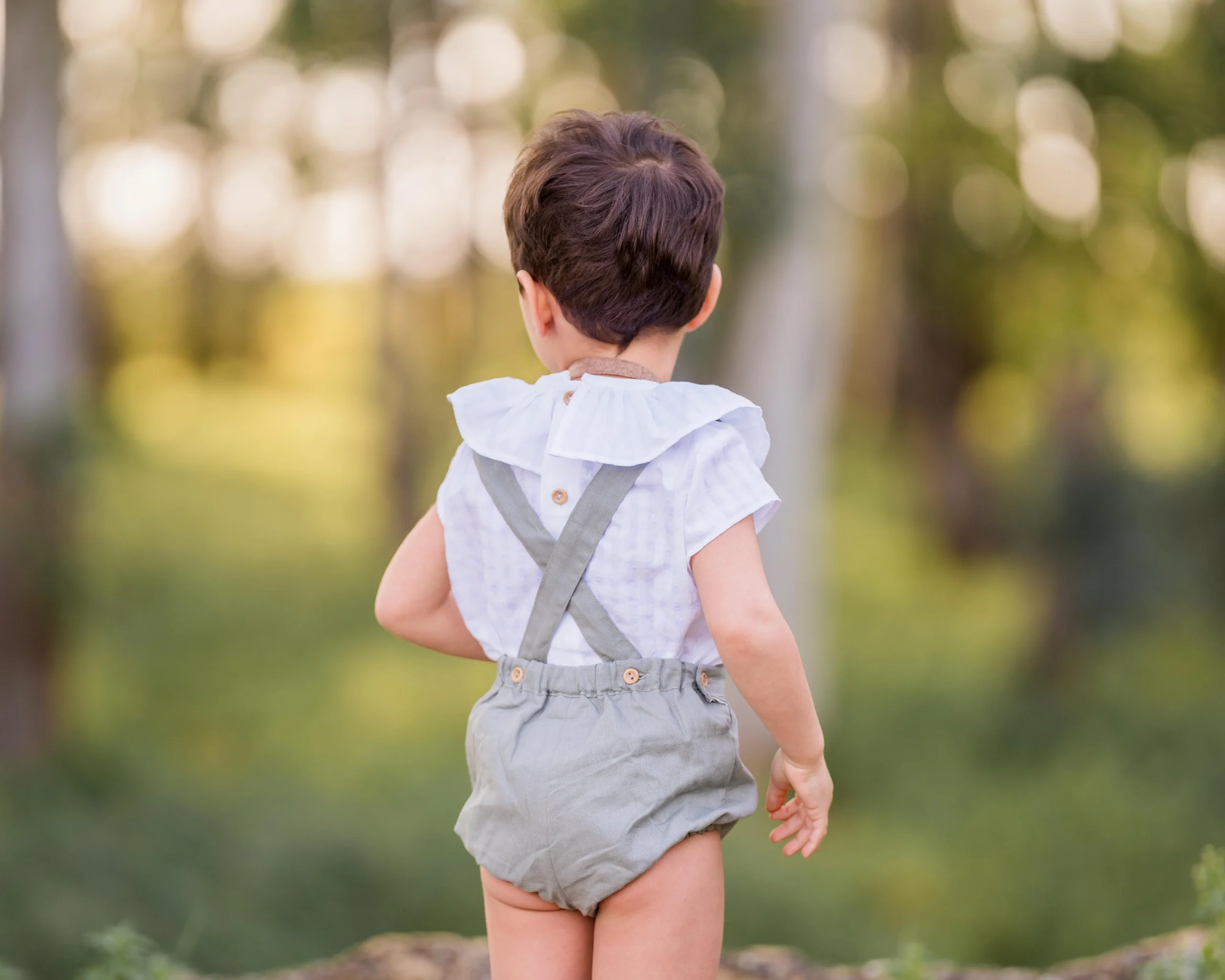 Este bombacho tirantes lino verde empolvado es ideal para niño hasta 3 años es súper favorecedor y puedes utilizar tanto para eventos como para cualquier ocasión. Su diseño es clásico y a la vez versátil.