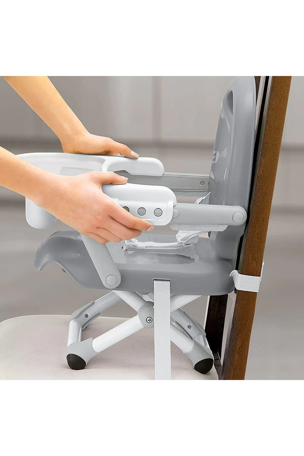La hora de la comida no tiene por qué ser un problema, podrás salir a comer a cualquier lugar con tu bebé sin preocuparte de forma práctica y segura. Con su sistema ajustable, bandeja extraible, correas de seguridad y fácil transportación, solo tendrás que preocuparte por disfrutar.
