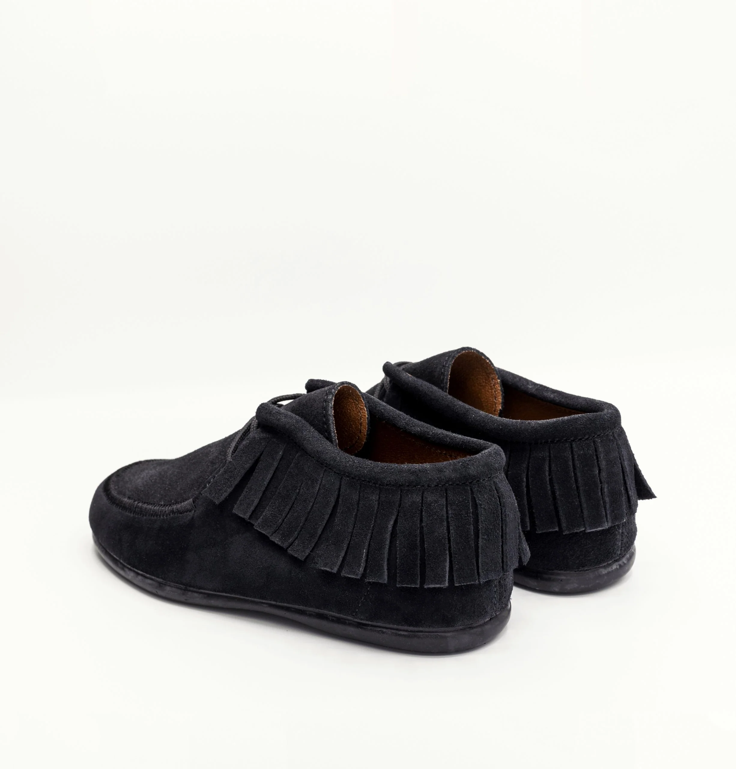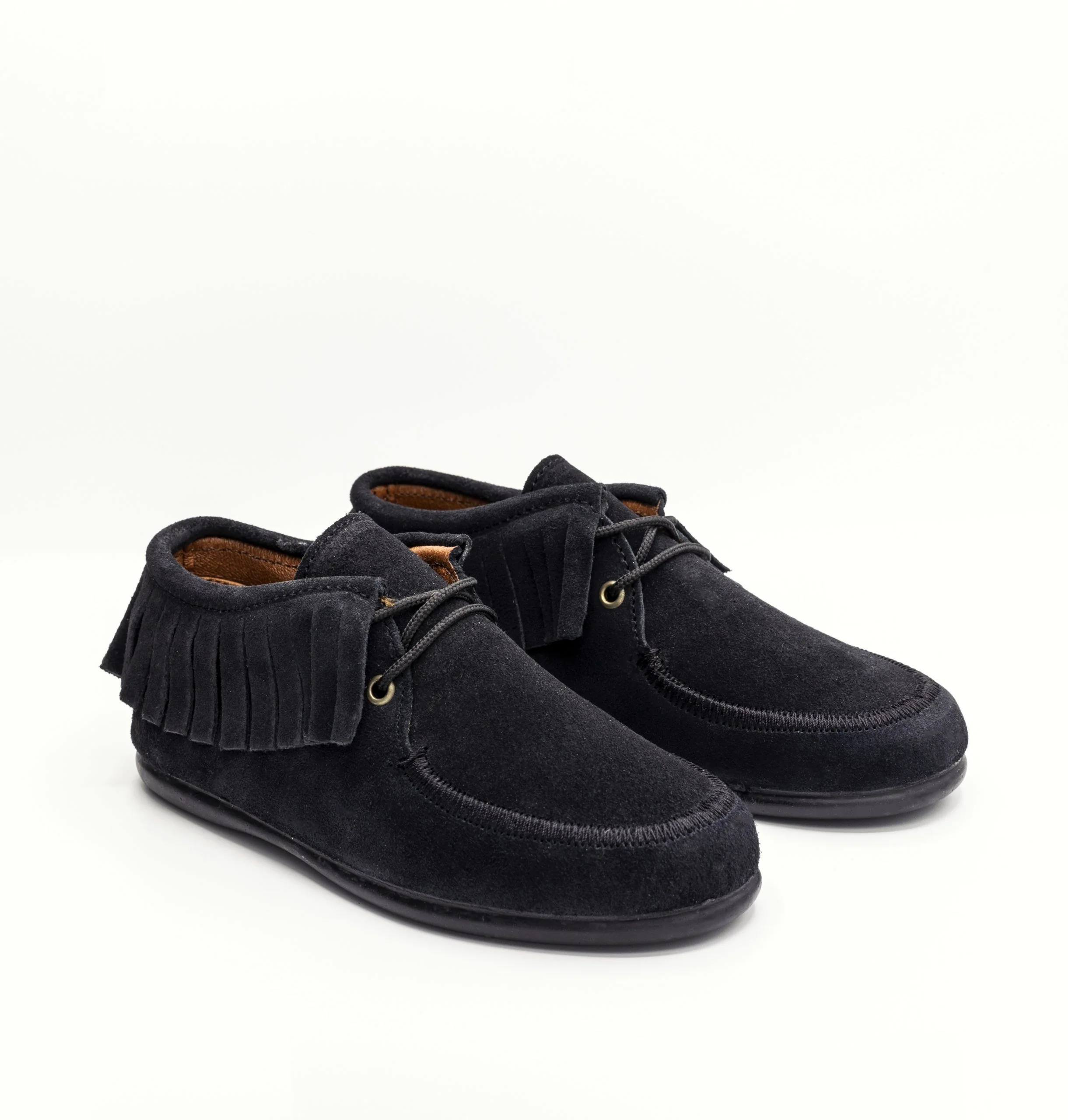 Apache es una botita de flecos de serraje con cordones y suela antideslizante de goma ideal para completar los looks otoñales más divertidos de tus niños esta temporada.