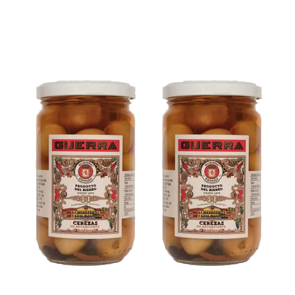 2 Tarros de cerezas del Bierzo con aguardiente. El Bierzo es tierra de cerezas excelentes y tierra de buen vino y buen aguardiente. Elaboradas artesanalmente según la receta tradicional. Es un licor excelente para compartir en la sobremesa.