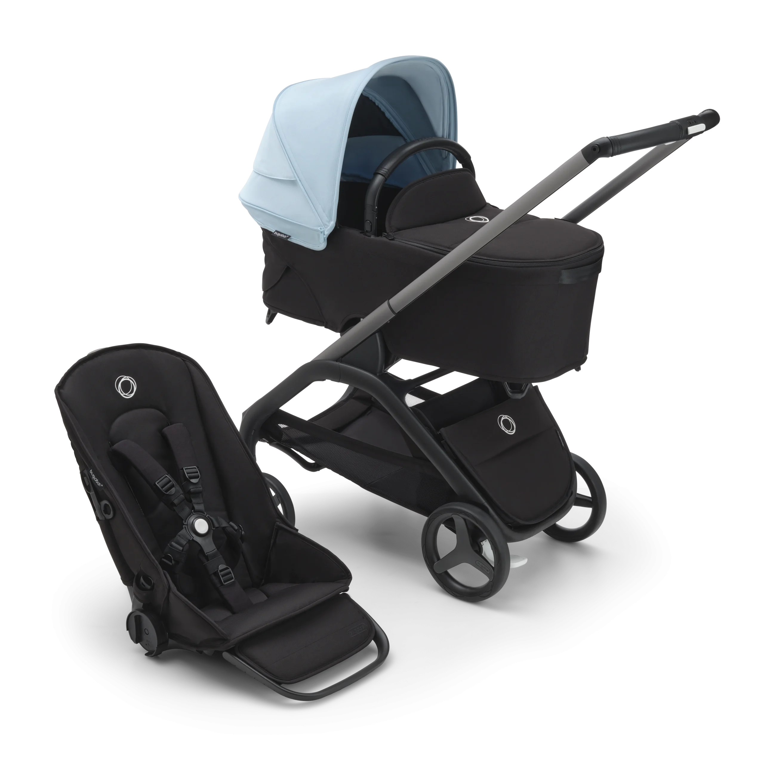 ¡Explora la ciudad con el Bugaboo Dragonfly! Plegado con una única mano, se mantiene en pie para un almacenamiento simple. Disfruta de una conducción única con modo City+ para el entorno urbano. Y el sistema de almacenamiento flexible asegura comodidad para ti y para tu hijo. ¡Explora con facilidad!