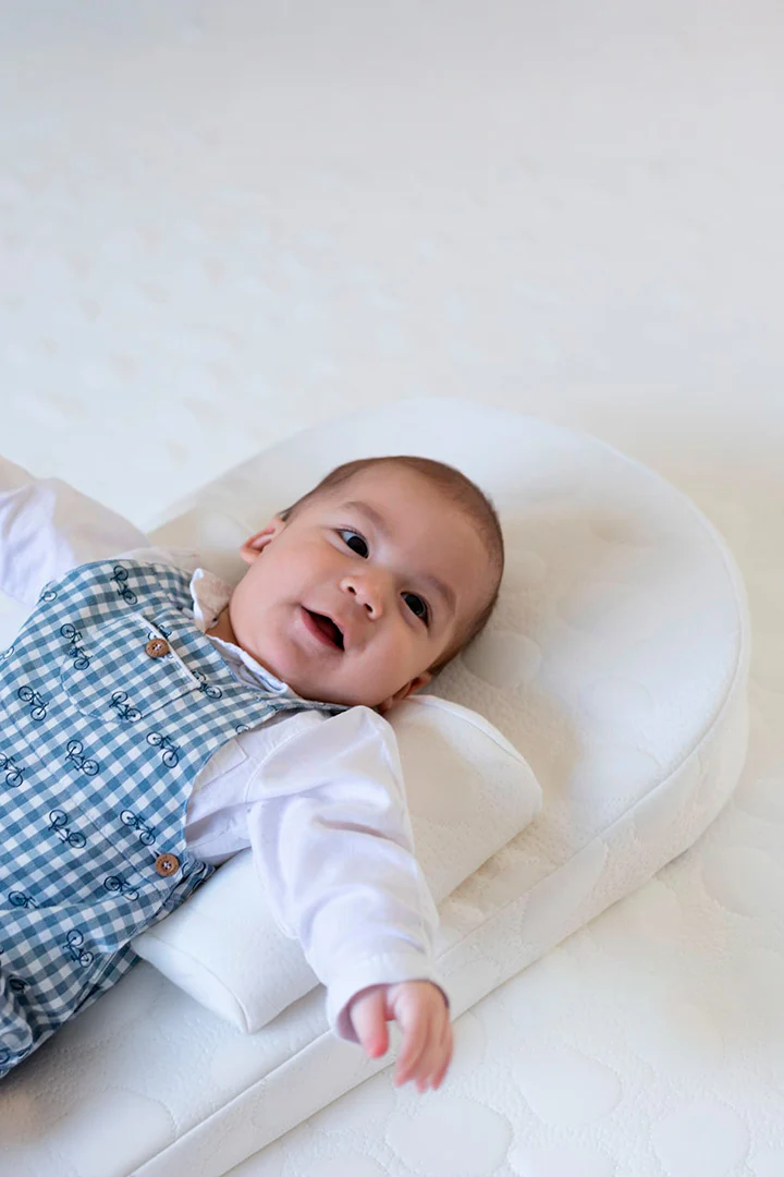 Nuestro cojín anti-reflujo para bebés de hasta 6 meses cuenta con una cuña inclinada que optimiza el ángulo del tracto digestivo para prevenir cólicos y regurgitaciones. Ideal también para fortalecer el cuello y la espalda del bebé al colocarlo boca abajo. Fabricado con espuma de alta densidad y cubierto por una funda lavable a mano, de tela suave, transpirable e hipoalergénica tratada contra ácaros, hongos, bacterias y manchas. Portátil y ligero, incluye bolsa para transporte fácil.