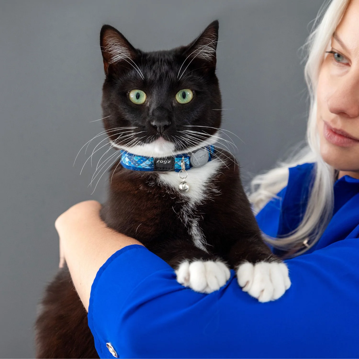 Collar Para Gato Fashioncat Estampado Azul Rogz Ajustable 20-31cm