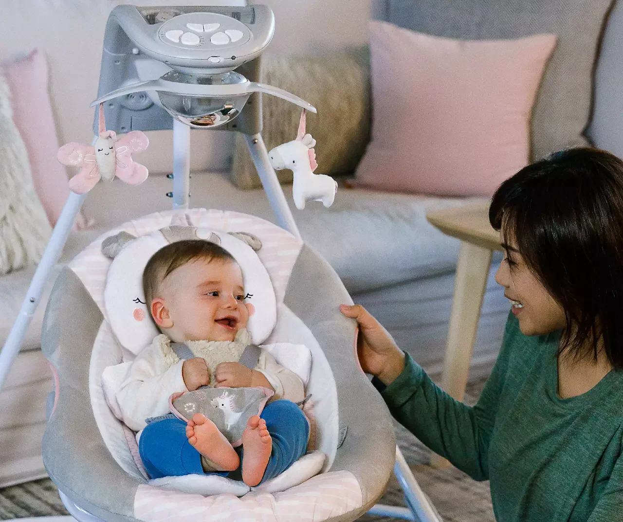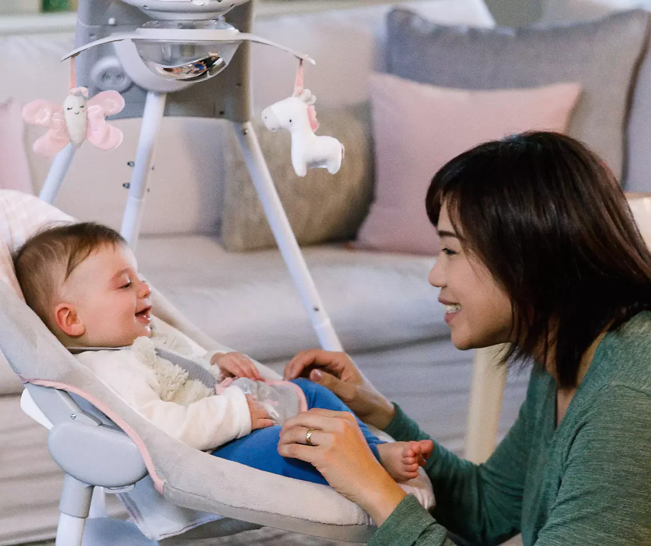 - La tecnología TrueSpeed mantiene 6 velocidades a medida que el bebé crece; Motor WhisperQuiet para experiencias de balanceo pacíficas; Los padres pueden controlar el columpio con la configuración del temporizador y las funciones de apagado automático