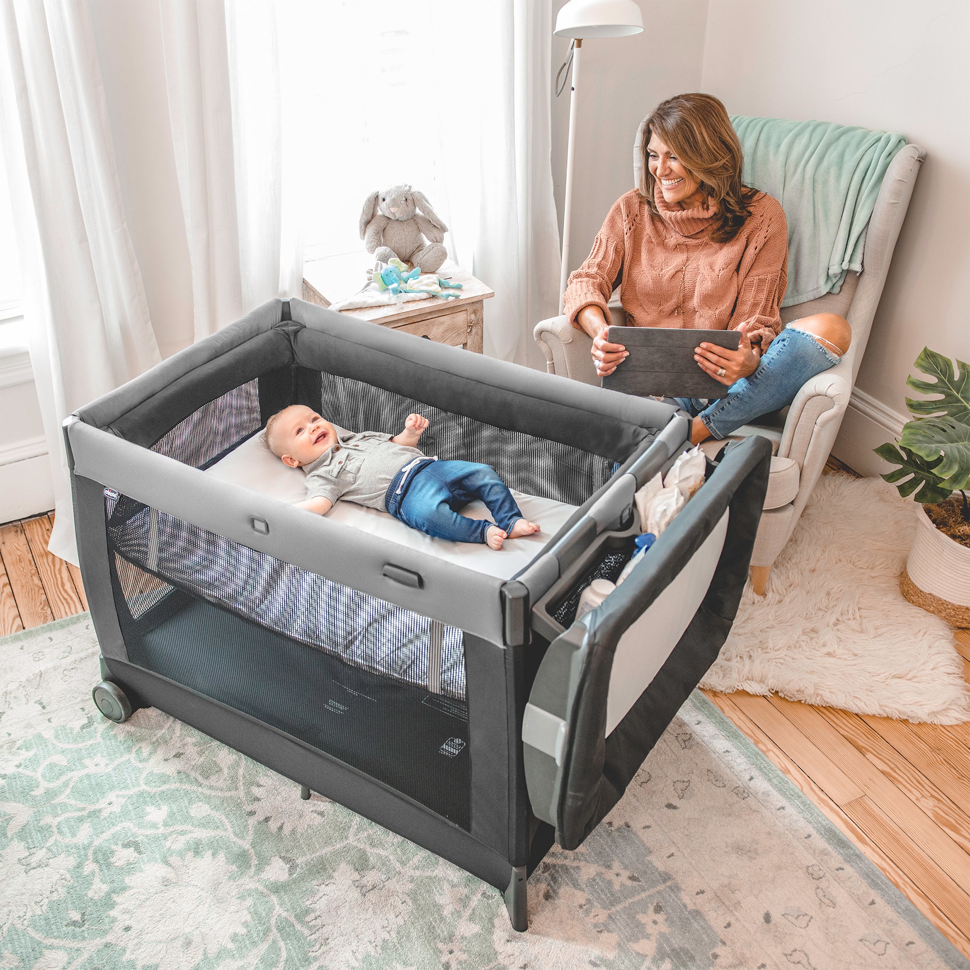 Ofrece años de comodidad todo en uno con una cuna para bebés de instalación rápida, un cambiador fácil de limpiar y una gran área de juegos para niños pequeños. Un elemento básico en casa para el uso diario, el plegado con botón y la gran bolsa de transporte también lo hacen perfecto para viajar.