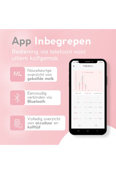 Conecte su extractor portátil para controlarlo de forma remota y realizar un seguimiento de su leche materna a través de la aplicación My YOUHA.