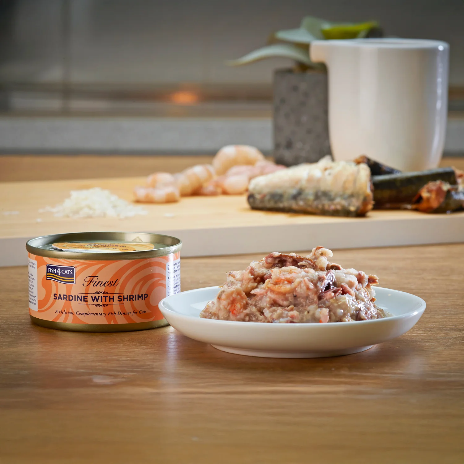 Fish4Cats Sardina con Camarón es un alimento húmedo complementario para gatos, con un 65% de sardina y un 5% de camarón. Esta combinación aporta proteínas marinas de fácil digestión y un alto contenido en ácidos grasos Omega-3.