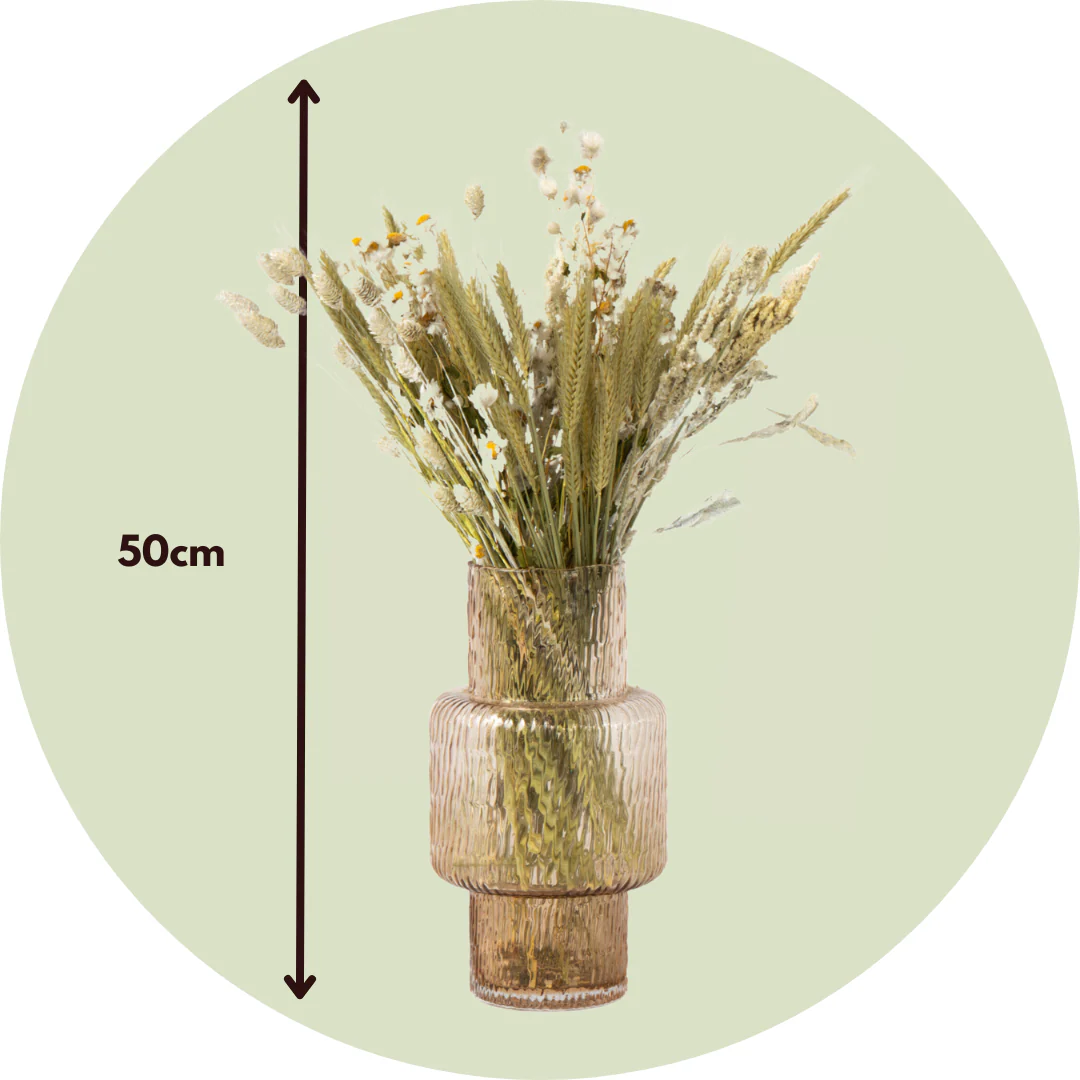 Recibirá un ramo con una altura de aproximadamente 50 centímetros. No se incluye ningún jarrón.