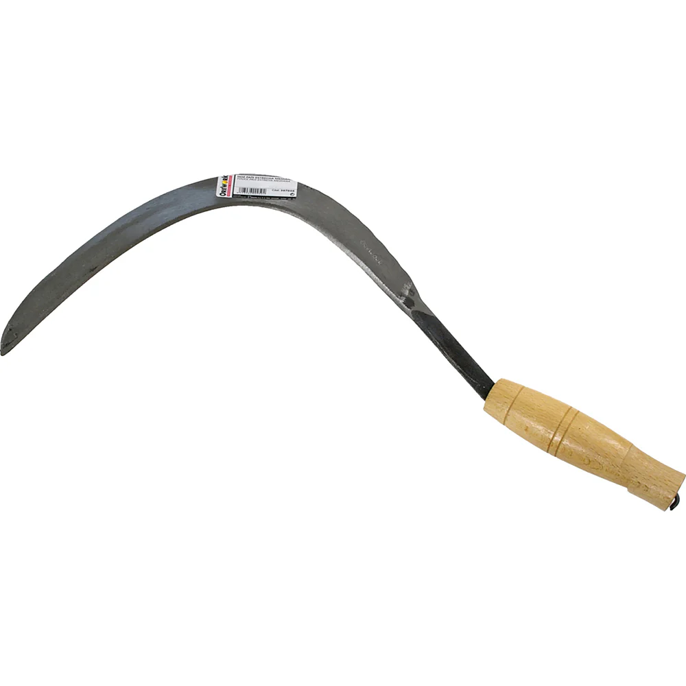 Hoja de filo fabricada en acero de alta calidad desbastadas por ambas caras y templadas íntegramente. No baila. Perfecta unión reforzada entre la hoja y el mango de madera. No temas a los cortes. Ligera y fácil de usar. Siega la hierba o la maleza en zonas pequeñas o difíciles con una sola mano. Modelo País / Mediana