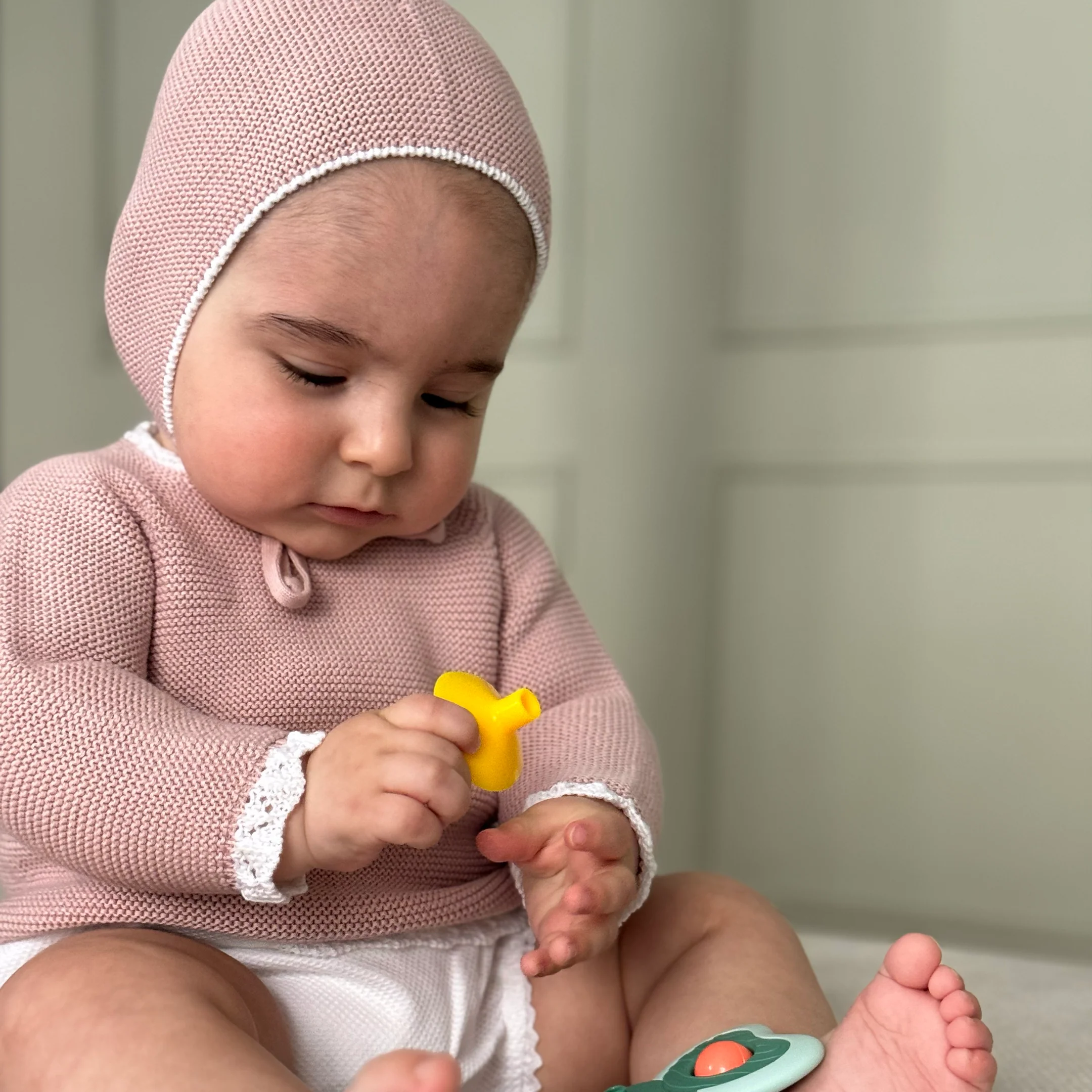 Jersey bebé algodón rosa empolvado/blanco