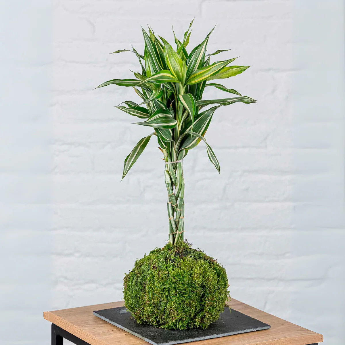 Aporta armonía y frescura a tu hogar con la Kokedama de Dracaena Sanderiana, más conocida como Bambú de la Suerte. Esta elegante planta de hojas estilizadas y tallos verdes es símbolo de prosperidad y energía positiva según el Feng Shui. Cultivada con la técnica japonesa de kokedama, se desarrolla en una esfera de musgo que mantiene la humedad y realza su belleza natural. Fácil de cuidar, es ideal para interiores con luz indirecta, perfecta para hogares y oficinas.