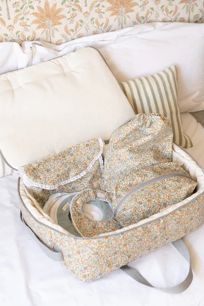 Nuestras maletas de maternidad, planas y rectangulares son la mejor opción para llevar la ropita de bebé al hospital sin que se arrugue. Son unas maletas clásicas y atemporales que luego usarás durante muchísimo tiempo: para ir de viaje, a dormir a casa de los abuelos o de algún amiguito. Son blanditas gracias a su guata interior pero conservan muy bien la forma cuando están vacías.