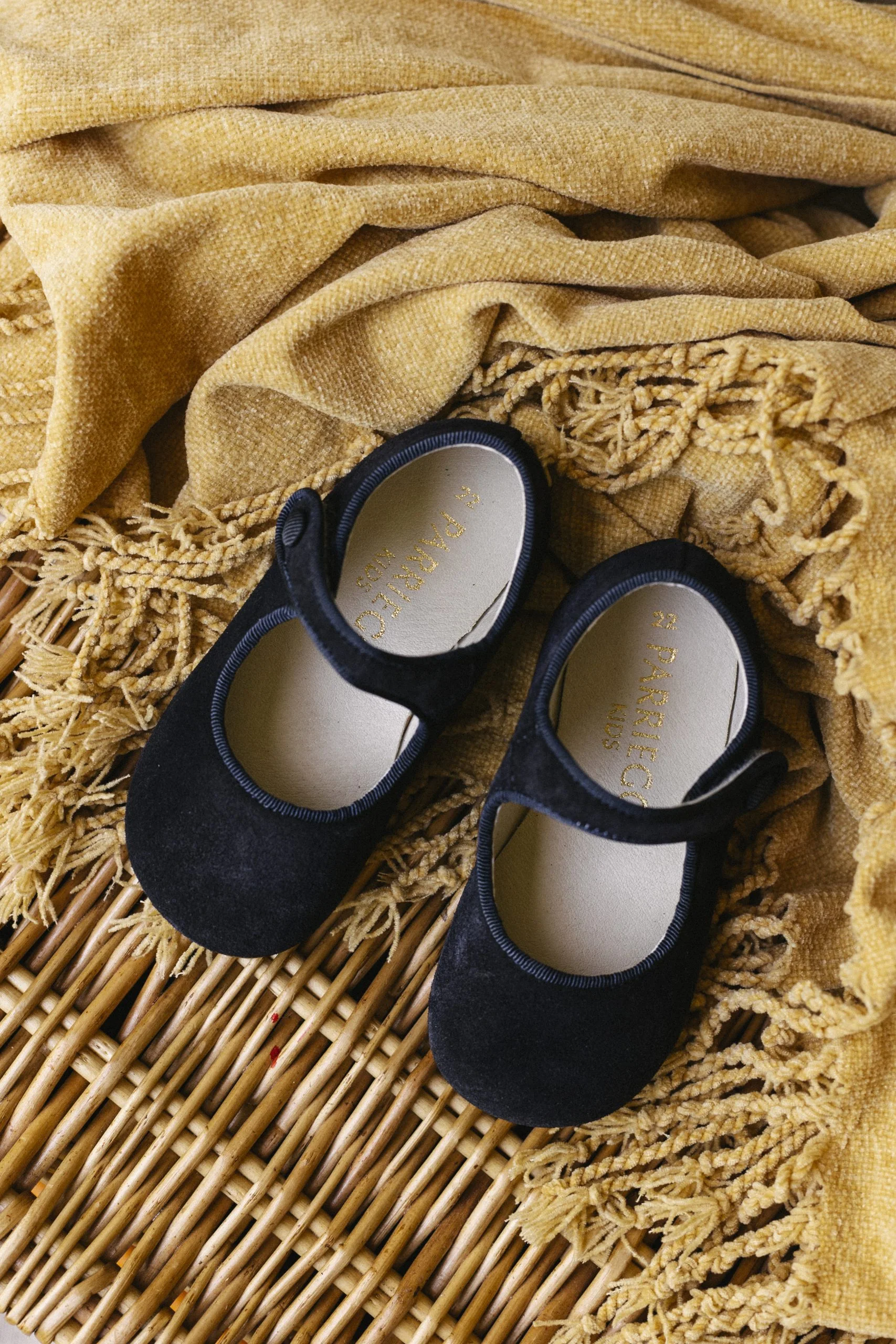 Mercedita para niñas de piel 100% muy suave y de gran calidad, con cierre de velcro y falso botón y detalle de ribete al tono en el contorno. El interior está totalmente forrado en piel de extraordinaria suavidad.