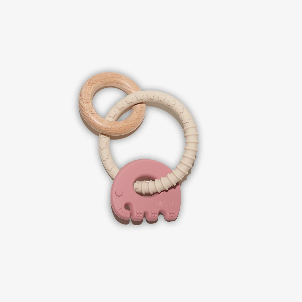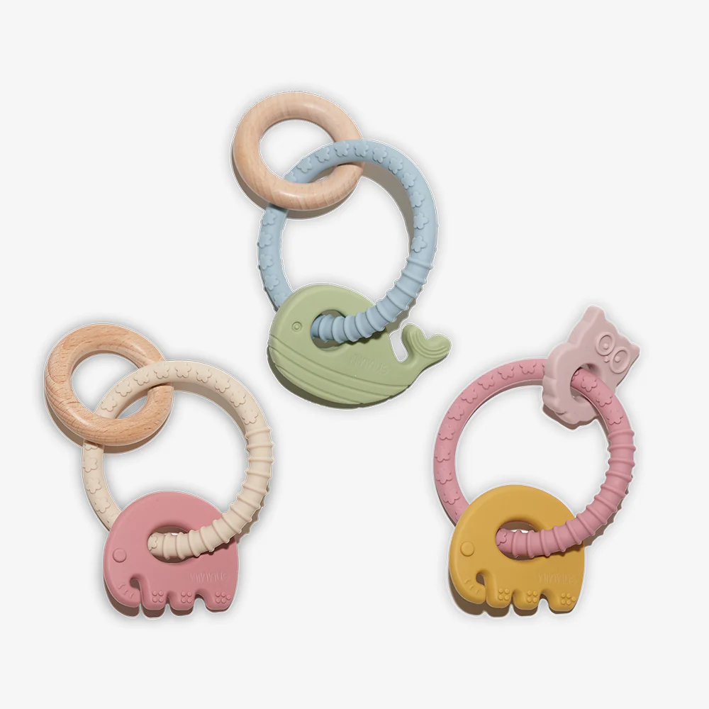 Ayuda a los más pequeños a explorar formas y sensaciones con un anillo de dentición compuesto de un animal y un pequeño aro de madera.