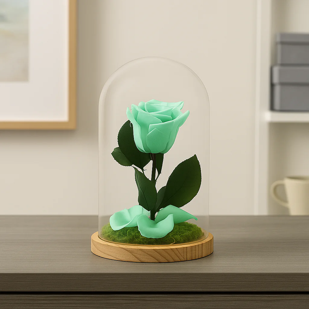 Mundo Eterno Rosa En Cúpula Verde Menta 12x20cm
