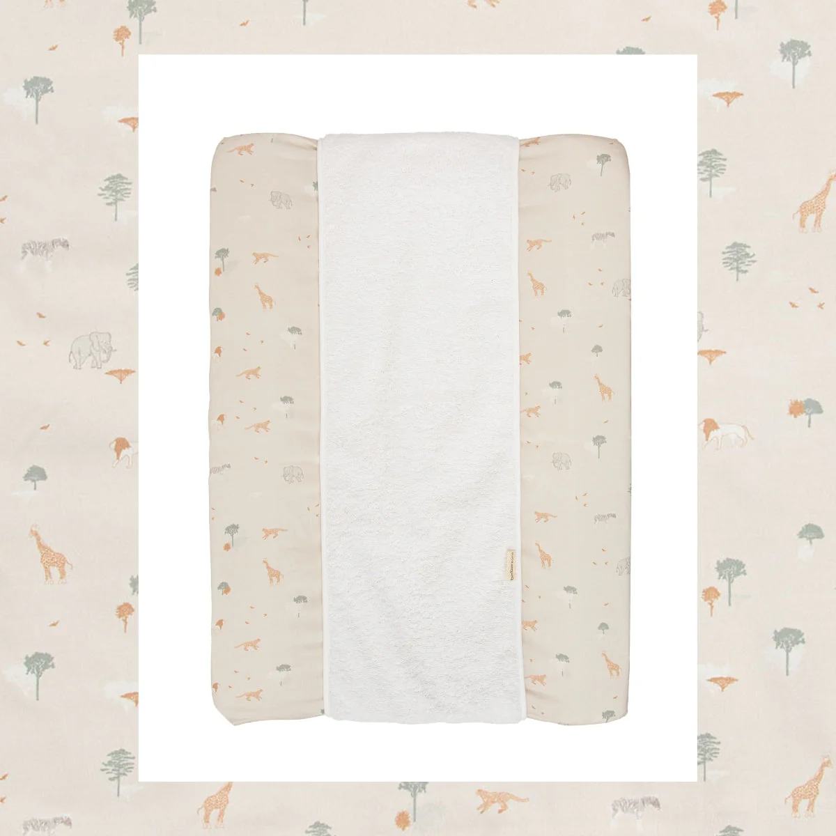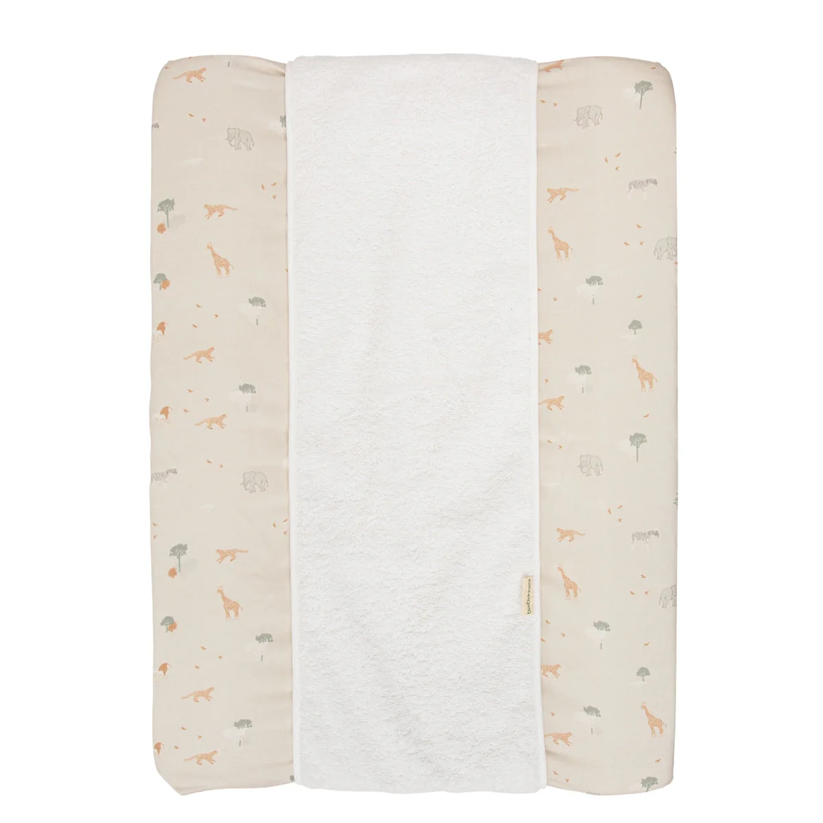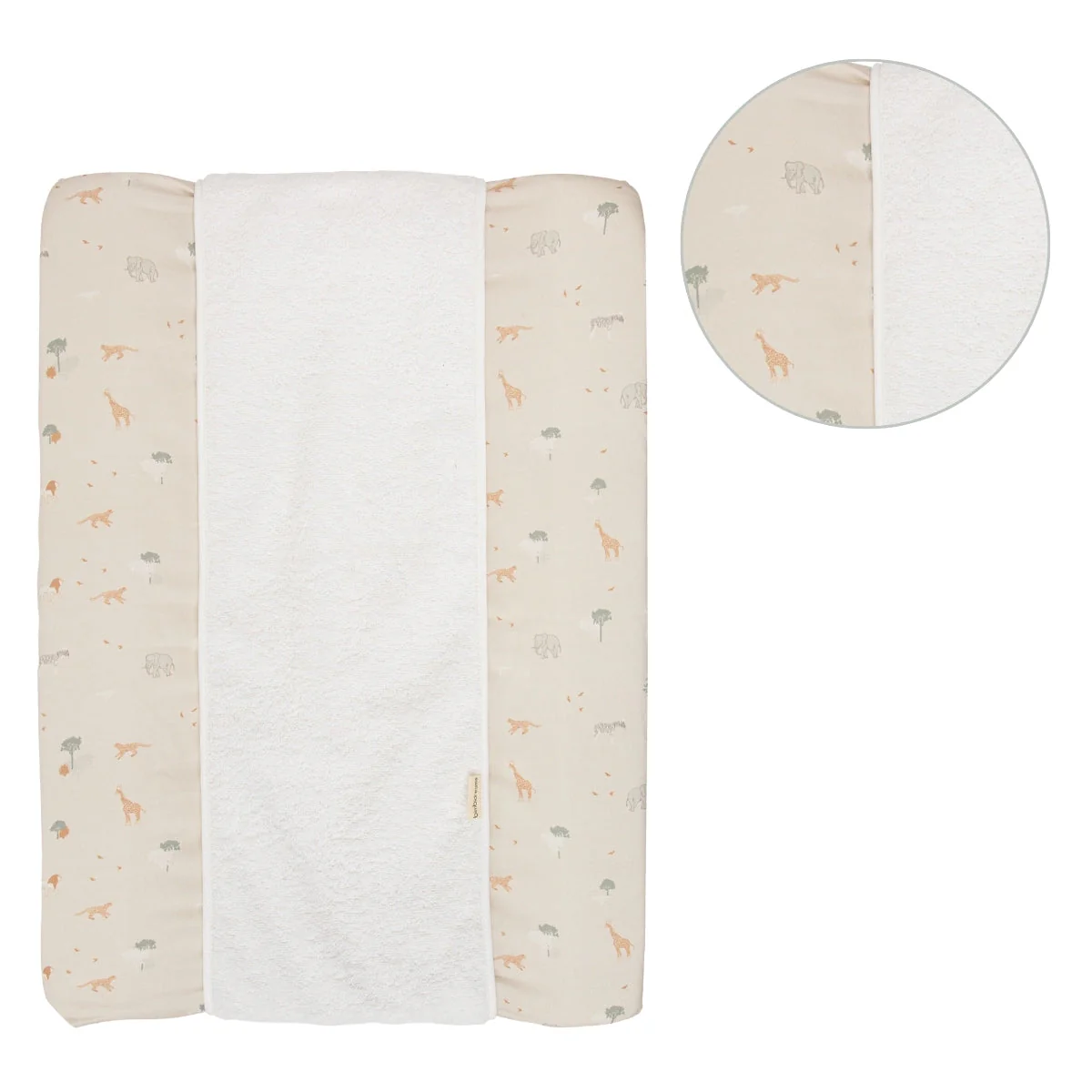 Su diseño en tonos cálidos y líneas limpias encaja perfectamente con cualquier estilo de habitación infantil. La zona central de rizo 100 % algodón protege la piel del bebé, absorbe la humedad y te da esa tranquilidad extra en caso de pequeños escapes. Gracias a su forma ajustable, se adapta sin complicaciones a cambiadores de 50×70 cm, tanto rígidos como blandos.
