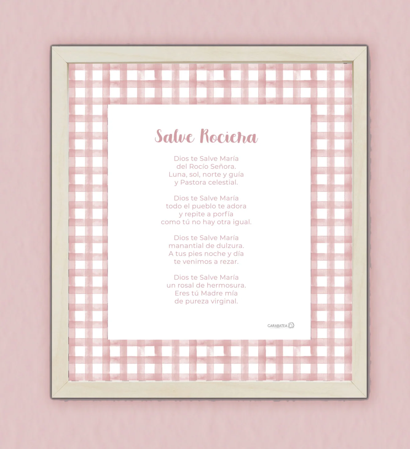 Esta lámina con la oración del Ángel de la Guarda hace pareja con la lámina de la Virgen del Rocio del mismo color, ambas decoradas al rededor con una franja de cuadros vichy, ideal para decorar una habitación infantil. Disponible en varios colores diferentes.