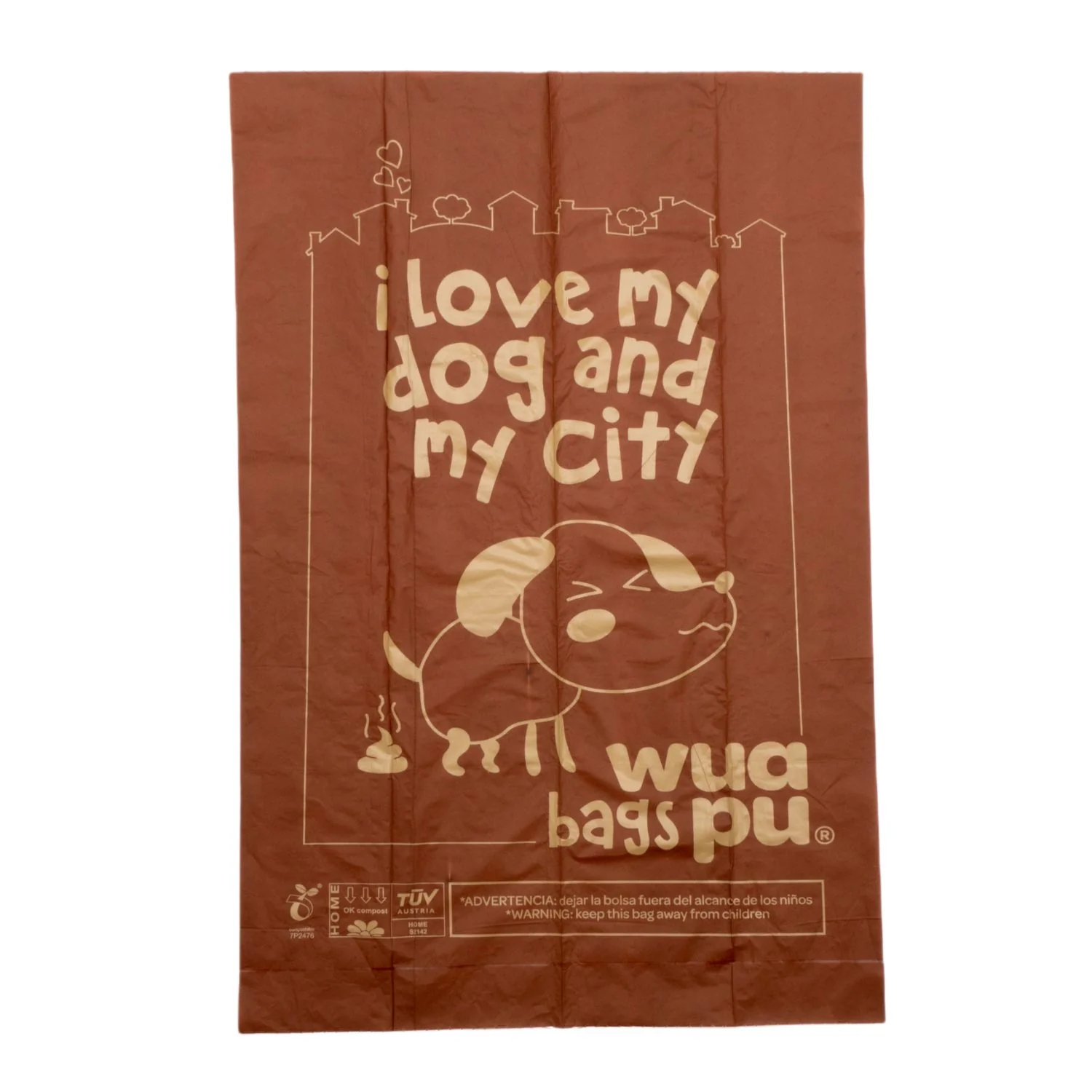 Bolsas Wuapu para recoger excrementos biodegradables y compostables, fabricadas a base del polímero biodegradable PBAT y harina fina de maíz. El PBAT es un polímero biodegradable que se degrada completamente en un corto período de tiempo por ataque microbiano bajo condiciones apropiadas en el medio ambiente. Los productos finales de la degradación por parte de los microorganismos son CO2, agua y biomasa. Rollo con 15 unidades. Caja con 16 rollos. Medidas de la bolsa: 32×23 cm. Incorporan un agradable perfume a lavanda.
