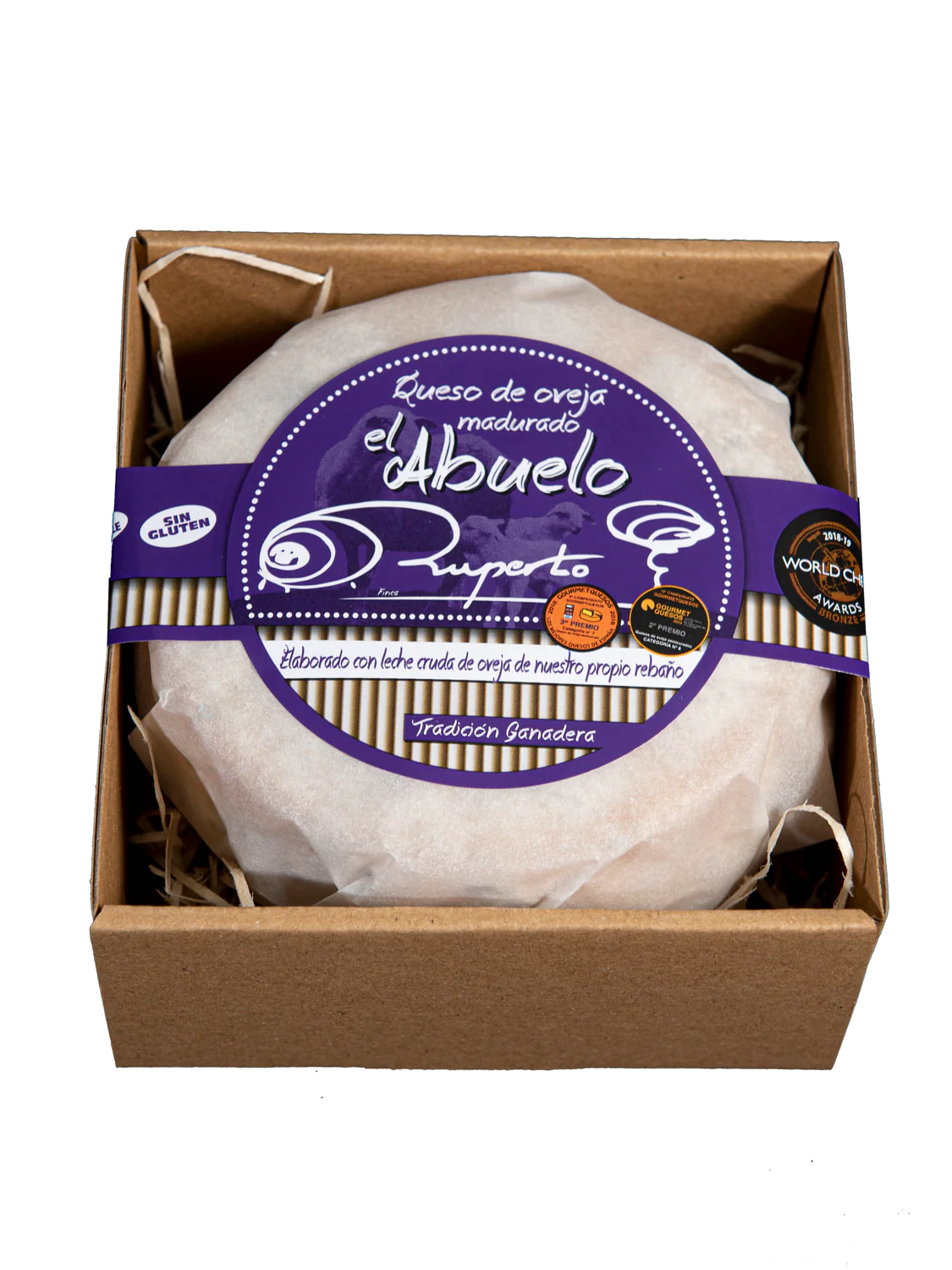 Una caja que incluye un pack de dos piezas de queso El Abuelo Ruperto de aproximadamente 650 gramos cada una.
