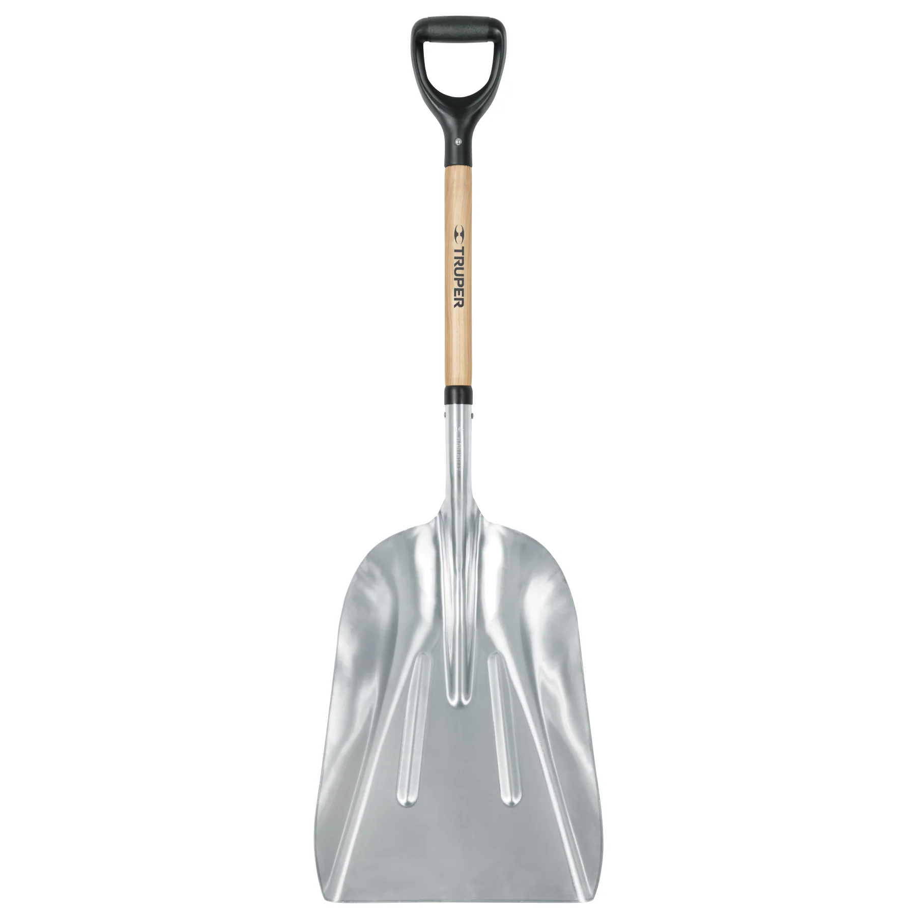 Pala Truper con cabeza de aluminio, mango de madera con acabado lacado y puño «Y» (anilla) fabricado en polipropileno. Espesor: 2 mm.