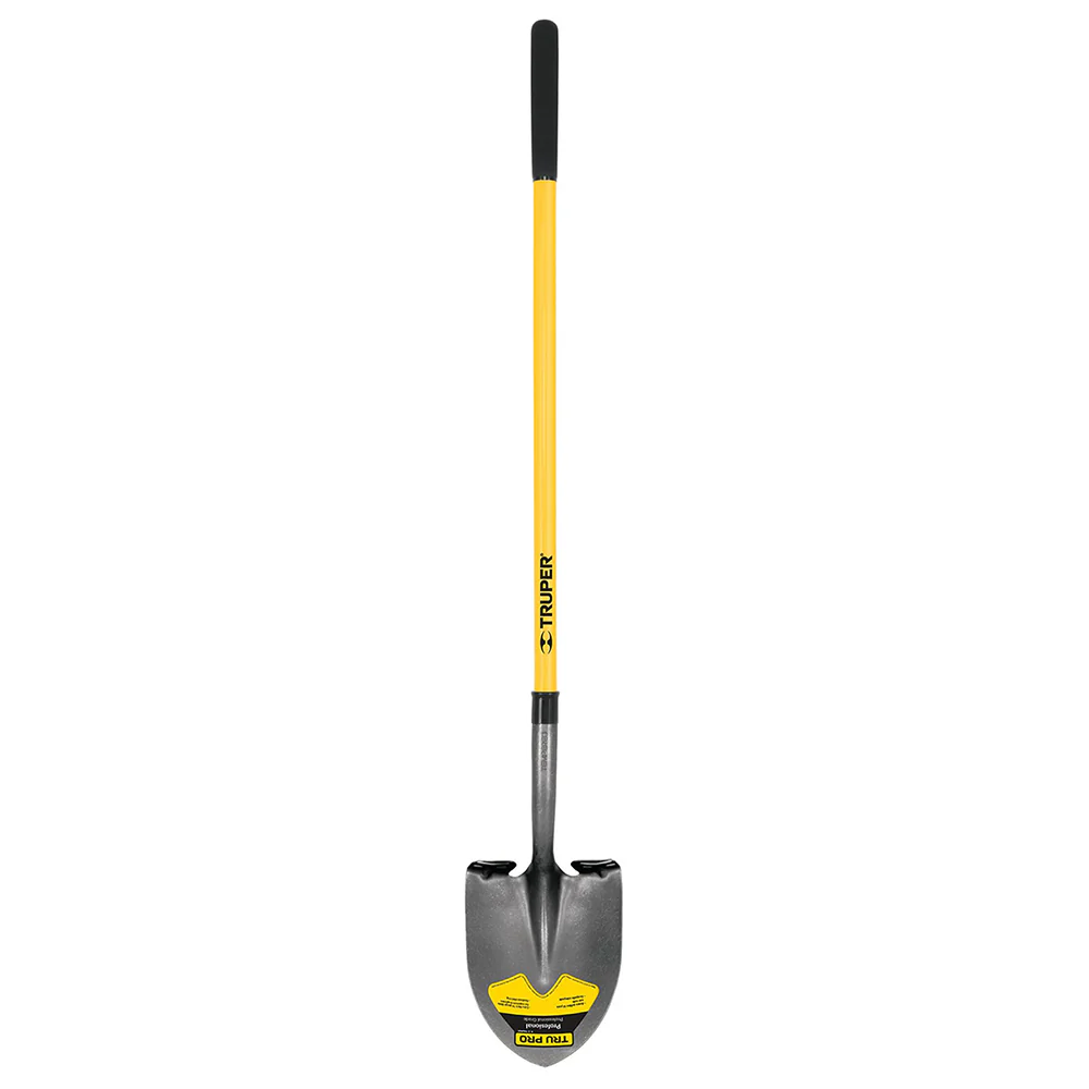 Pala Truper con cabeza puntiaguda y mango largo fabricado en fibra de vidrio. Incorpora cabeza de acero al carbono con acabado en pintura híbrida con polvo transparente y hombros extendidos para una mayor comodidad y control cuando se trabaja. Ancho cabeza: 22 cm.