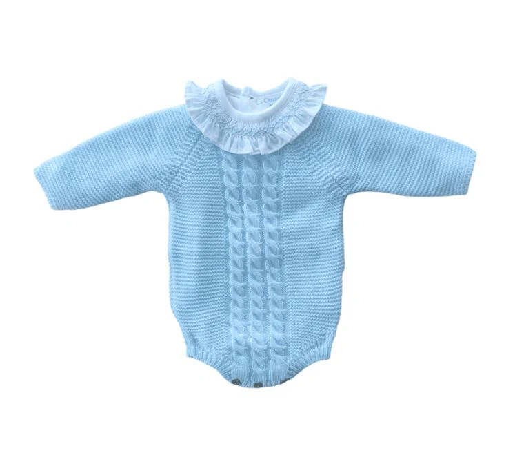 Pelele corto con trenza 100% acrílico en azul celeste bebé (CH03)