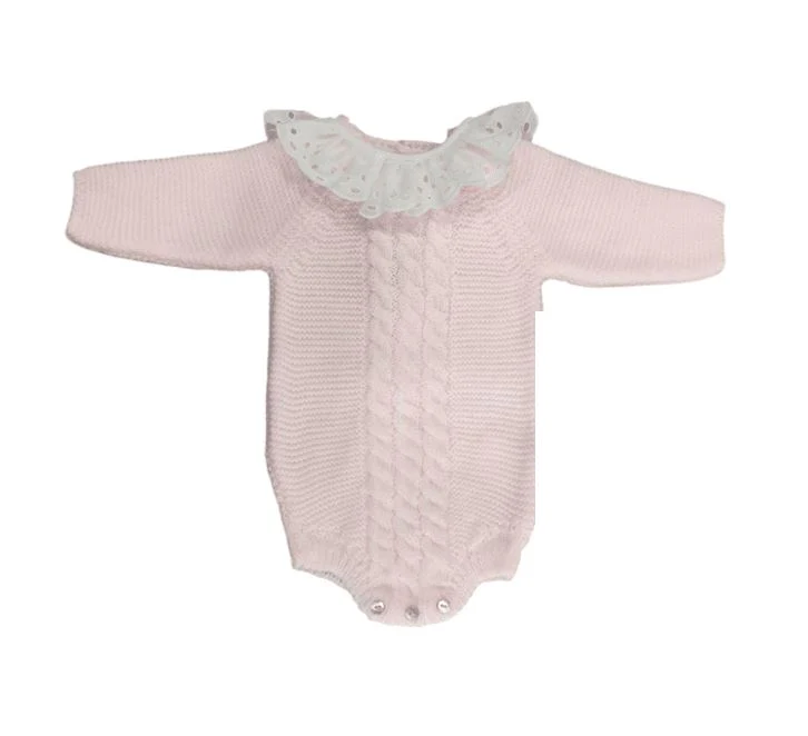 Pelele corto con trenza 100% acrílico en rosa bebé (CH04)