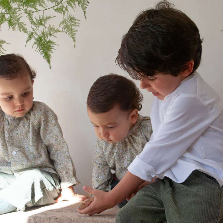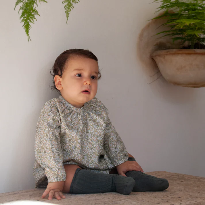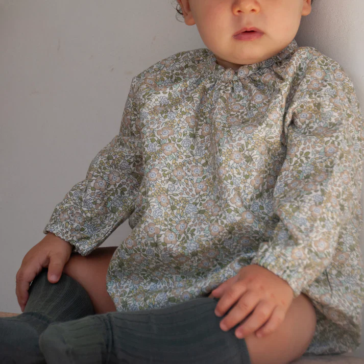 Pelele unisex de manga larga en viyella floral en tonos verdes. Este nuevo modelo tiene un acabado sencillo, sin cuello, que lo hace súper versátil, ya que se puede poner sin nada, con un cuello postizo o incluso un body con cuello, lo que más nos apetezca cada día.