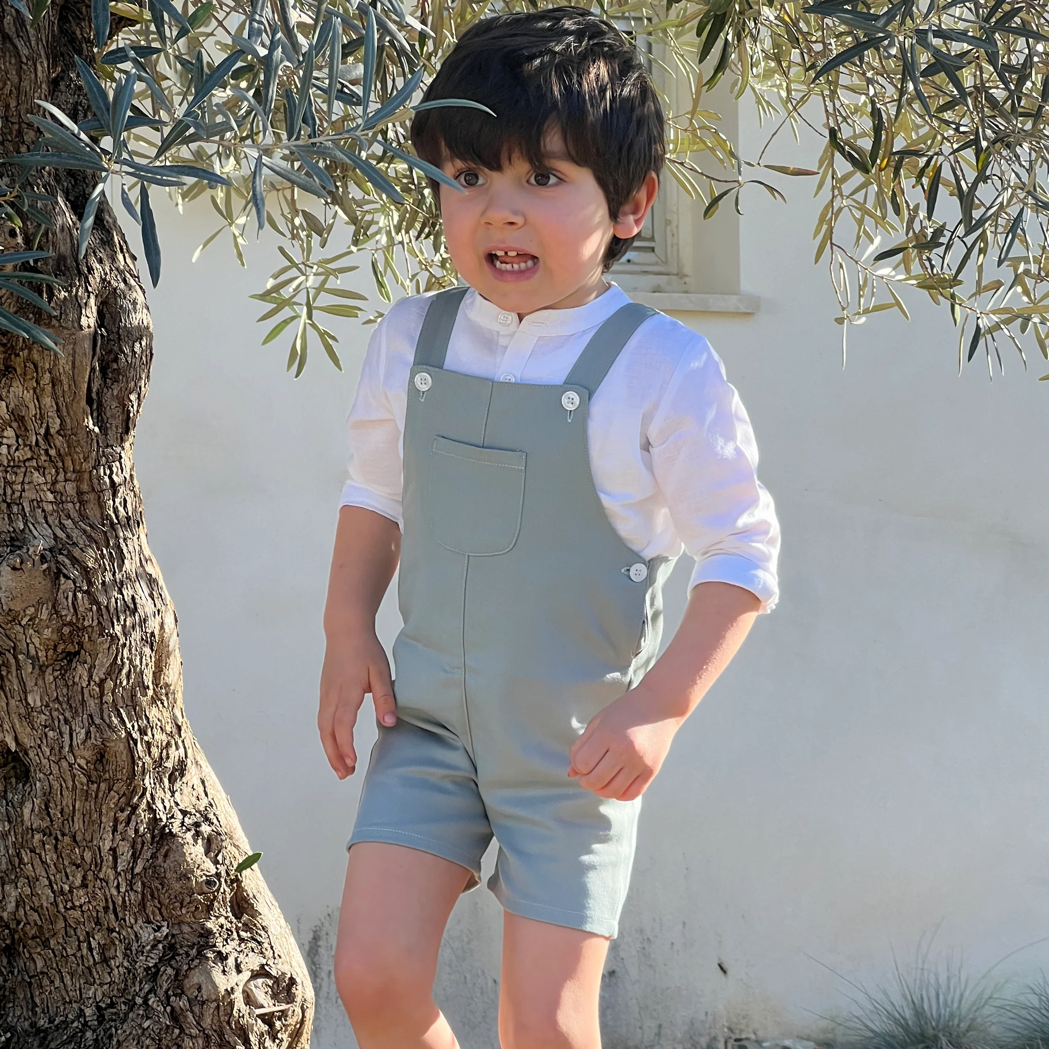 Peto corto unisex con botones a dos alturas en los tirantes, ¡que los acompañará en todas sus aventuras! Sin duda una de las prendas más cómodas.