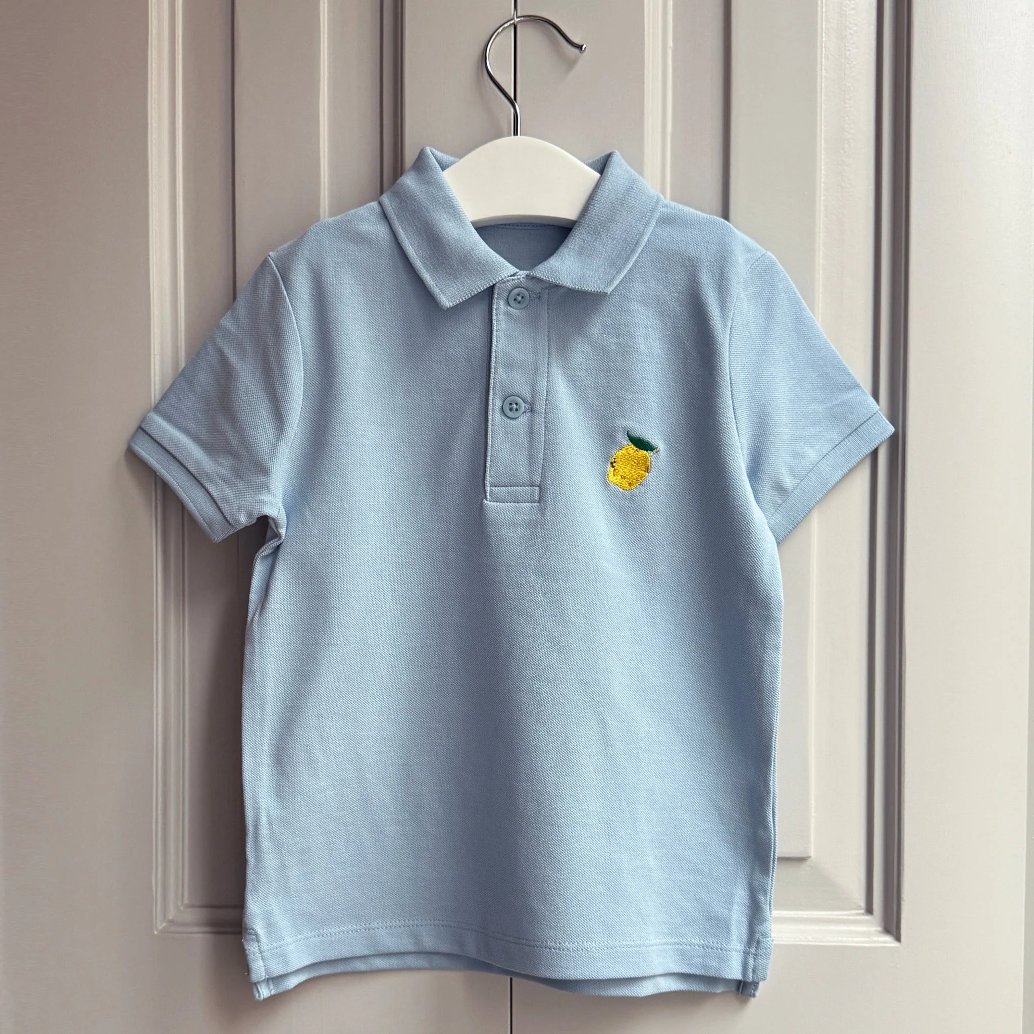 Polo básico con cuello con un limón bordado en el pecho. Una prenda que nunca falla y que es ideal para combinar con nuestras colecciones de primavera verano.