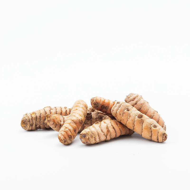 En la Huerta de Pancha, recolectamos la cúrcuma cuando la piel de los bulbos está bien desarrollada y madura. Procesamos los bulbos maduros inmediatamente después de la cosecha.