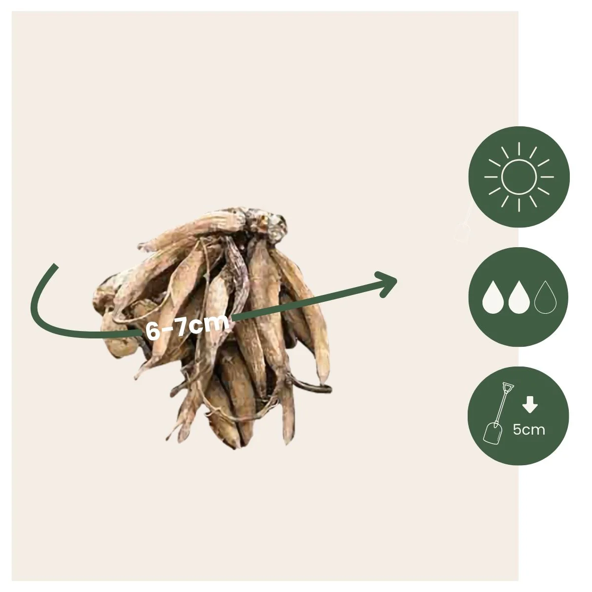 Los bulbos de flores tienen una circunferencia de aproximadamente 5/6 cm en el momento de la entrega.