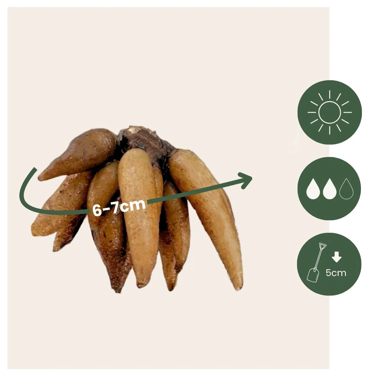 Los bulbos de flores tienen una circunferencia de aproximadamente 5/6 cm en el momento de la entrega.