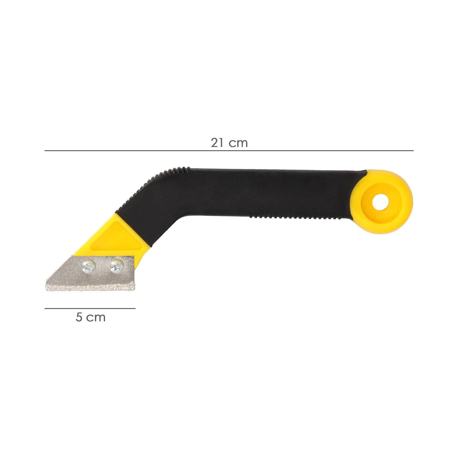 Rascador Juntas- Medida rascador: 21 cm.- Longitud hoja: 5 cm.- Mango engomado con estrias para aumentar el agarre.- Hoja realizada en acero templado con filo diamantado.- Ideal para la limpieza o eliminación de juntas o suciedad de juntas.- También se puede usar como rascado de cemento.- Incluye 3 hojas.- Articulo conocido como rascador lechada, rasqueta junta azulejos, limpiador de juntas azulejos, rasqueta juntas, removedor juntas, raspador de juntas.