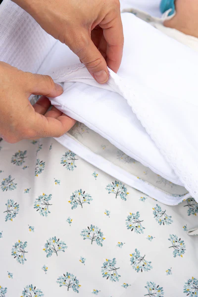 – Hemos incorporado una cremallera invisible en la parte superior para poder extraer el relleno. Así aceleramos el proceso de lavado y secado y podemos utilizar la parte de arriba en verano como una colcha fina muy fresquita sin la guata.