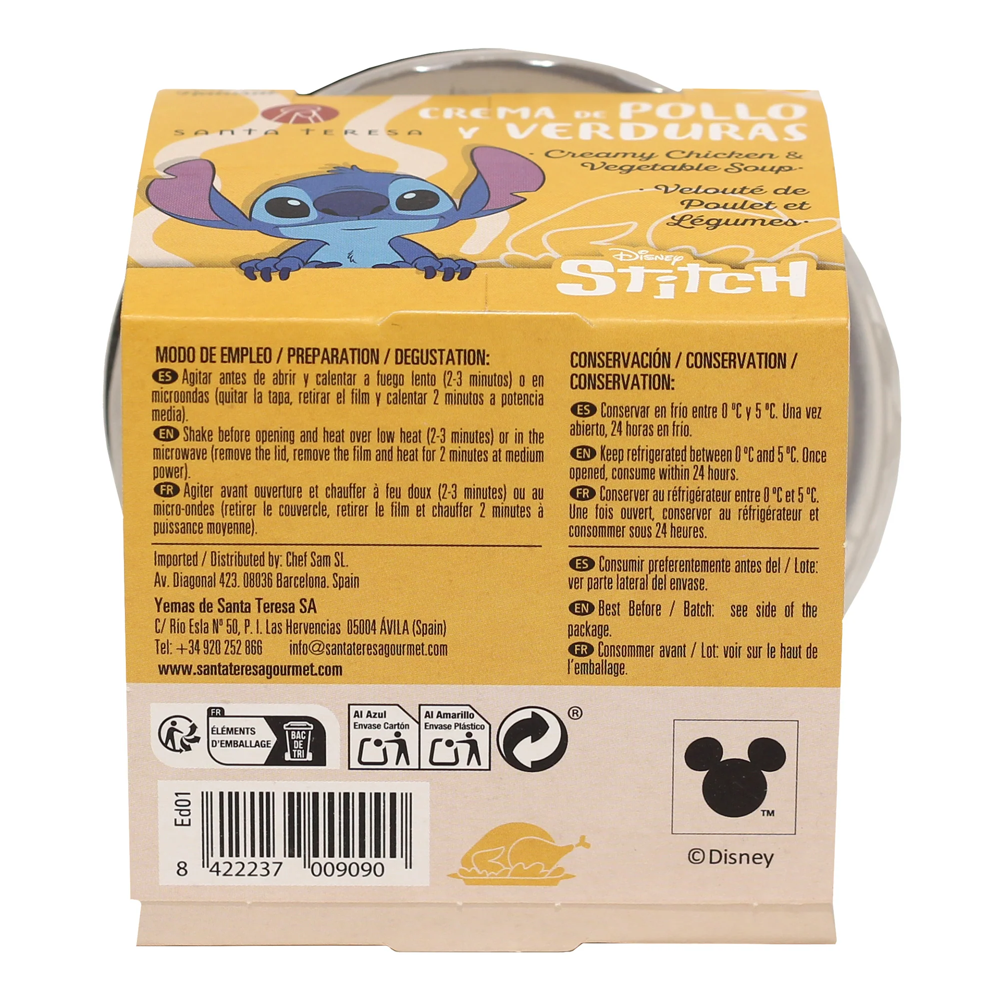 ALIMENTACIÓN EQUILIBRADA PARA LOS MÁS PEQUEÑOS Una crema especialmente desarrollada para niños de 1 a 10 años, que combina carne de pollo con verduras frescas para ofrecer una comida completa, suave, digestiva y deliciosa. Ideal como cena o primer plato. INGREDIENTES 100% NATURALES Y DE CALIDAD Elaborada solo con patata, zanahoria, puerro, caldo de pollo y aceite de oliva virgen extra. No contiene conservantes, aditivos, espesantes, gluten ni lactosa. Una receta limpia, sin ingredientes innecesarios, pensada para cuidar la salud infantil. PLATO RÁPIDO Y SALUDABLE: Suave y cremosa, es perfecta para ofrecer una comida equilibrada sin complicaciones. Basta con agitar, calentar y servir. SABOR CASERO: Una receta tradicional pensada para alimentar saludablemente. En Santa Teresa, llevamos más de un siglo elaborando alimentos de calidad, naturales, con mimo, tradición y con los mejores ingredientes. CONSERVACIÓN: Conservar en frío entre 0ºC y 5ºC. Una vez abierto, conservar 24 horas en frío. MODO DE EMPLEO: Envase microondable: calentar y listo. Agitar antes de abrir, calentar a fuego lento (2-3 minutos) o en microondas (quitar la tapa, retirar el film y calentar durante 2 minutos a potencia media). PRESENTACIÓN: Tarrina de 280g