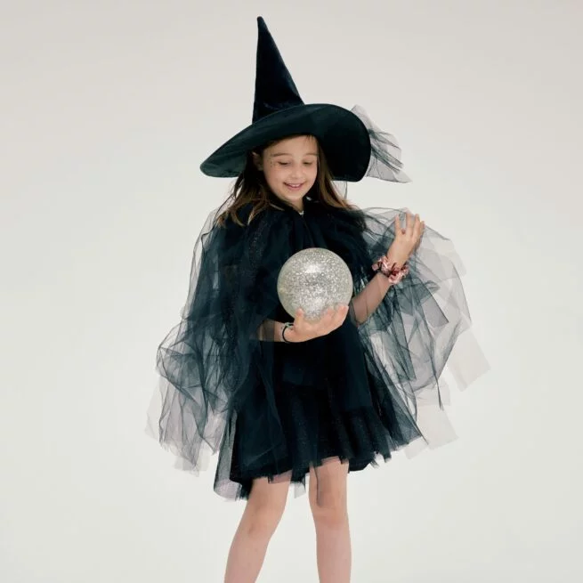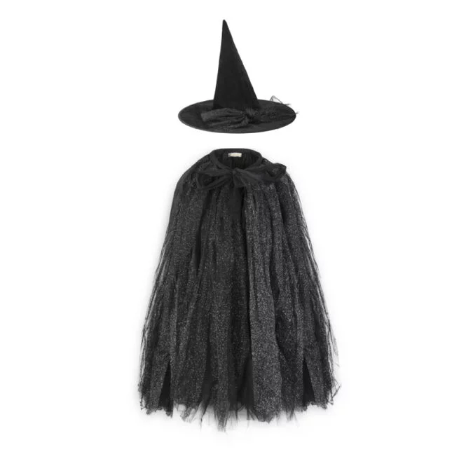 El kit de bruja incluye falda-capa y sombrero puntiagudo.