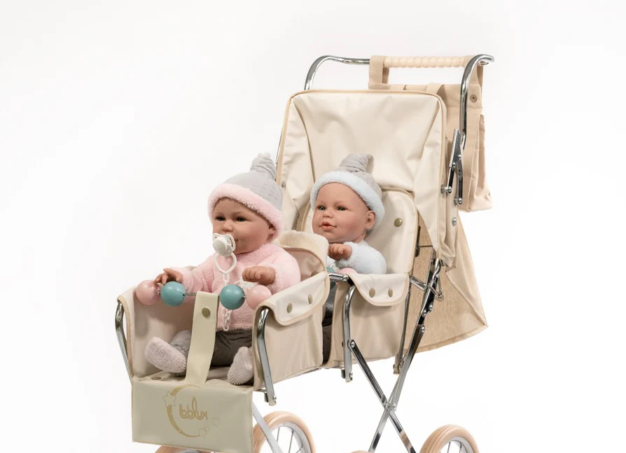 La silla de paseo de muñecos o bebé reborn ‘Big Gemelar Beige’ pertenece a la ‘Colección París’ de los juguetes Bebelux.
