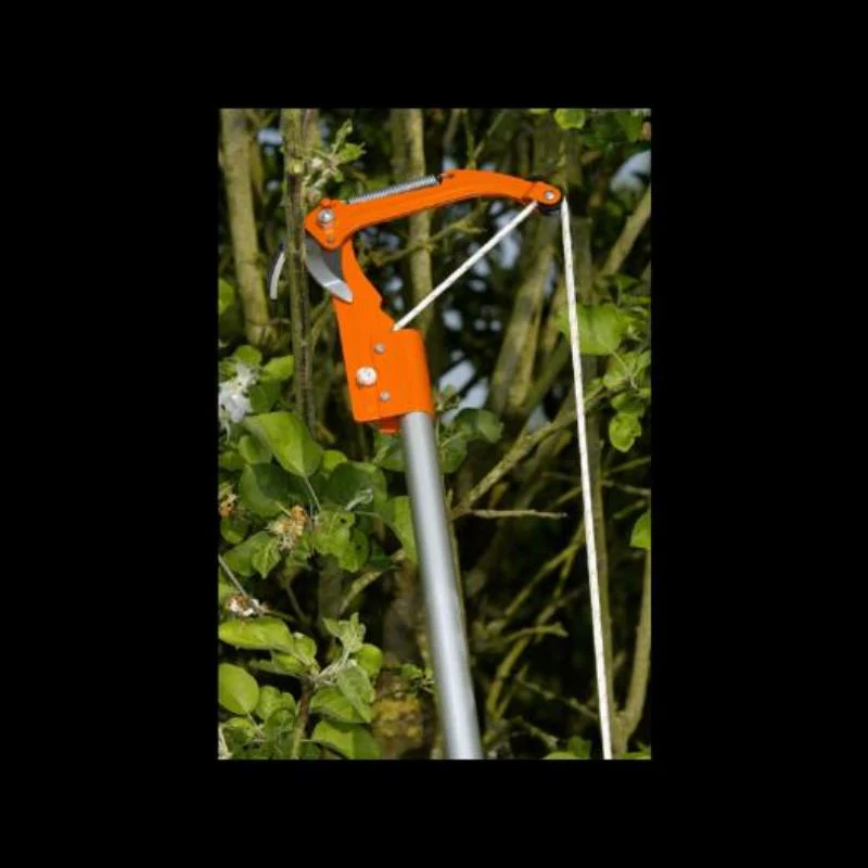 Tijera cortarramas con hoja cambiable y templada, ideal para cortar ramas de difícil acceso y gran altura. Contrahoja estampada y templada, con canal para la eliminación de la savia, lo que dificultaría el deslizamiento de la hoja. Doble efecto multiplicador. Se ajusta con abrazadera de acero y tornillos. Ajusta en pértigas de Ø 25 mm (1″). Suministrada con cuerda de 5 m de longitud Se ajusta con abrazadera de acero y tornillos. Ajusta en pértigas de Ø 25 mm. Doble efecto multiplicador.