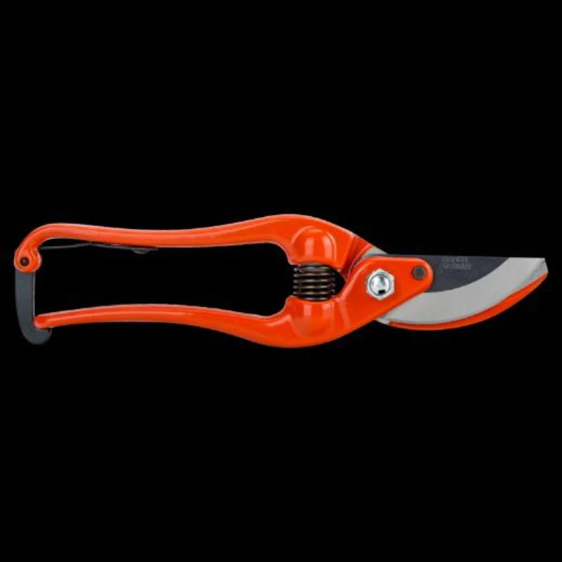 Tijera de podar de 1 mano, diseñada para podar todo tipo de plantas, especialmente frutales y viñedos. Con mango de acero forjado y hoja de acero templado. Esta hoja es más grande para un uso general. Modelo de afilado duradero, de alto rendimiento, diseño robusto y agarre cómodo. Incorpora mecanismo de cierre (pasador). Apertura: 20-25 mm. Longitud: 23 cm. Peso: 440 g Mango: Acero forjado. Capacidad corte: 25 mm.