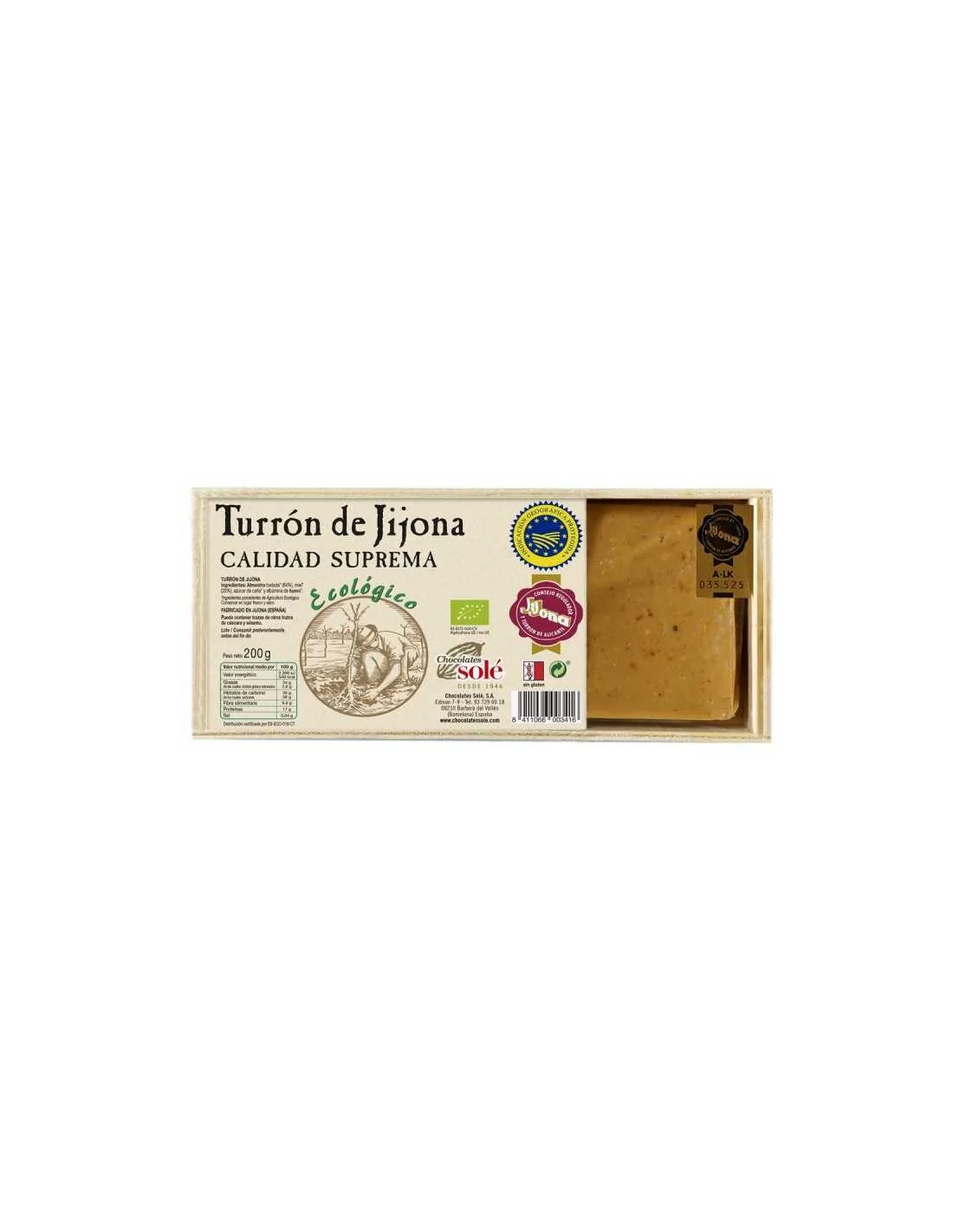 Almendra Tostada* (64%), miel*(20%), azúcar de caña y albúmina de huevo*.