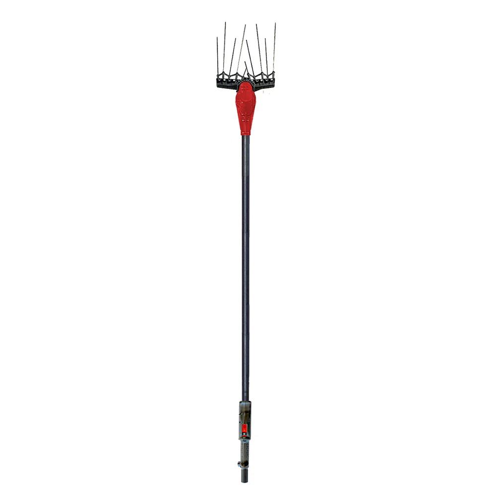 Vareadora fija de aceitunas, con funcionamiento a batería, equipada con 10 dedos de 304 mm. Modelo ligero, cómodo y muy sencillo de manejar. Presenta una longitud de 2,4 m, oscilación de peine 1550/min y cable de 14 m.