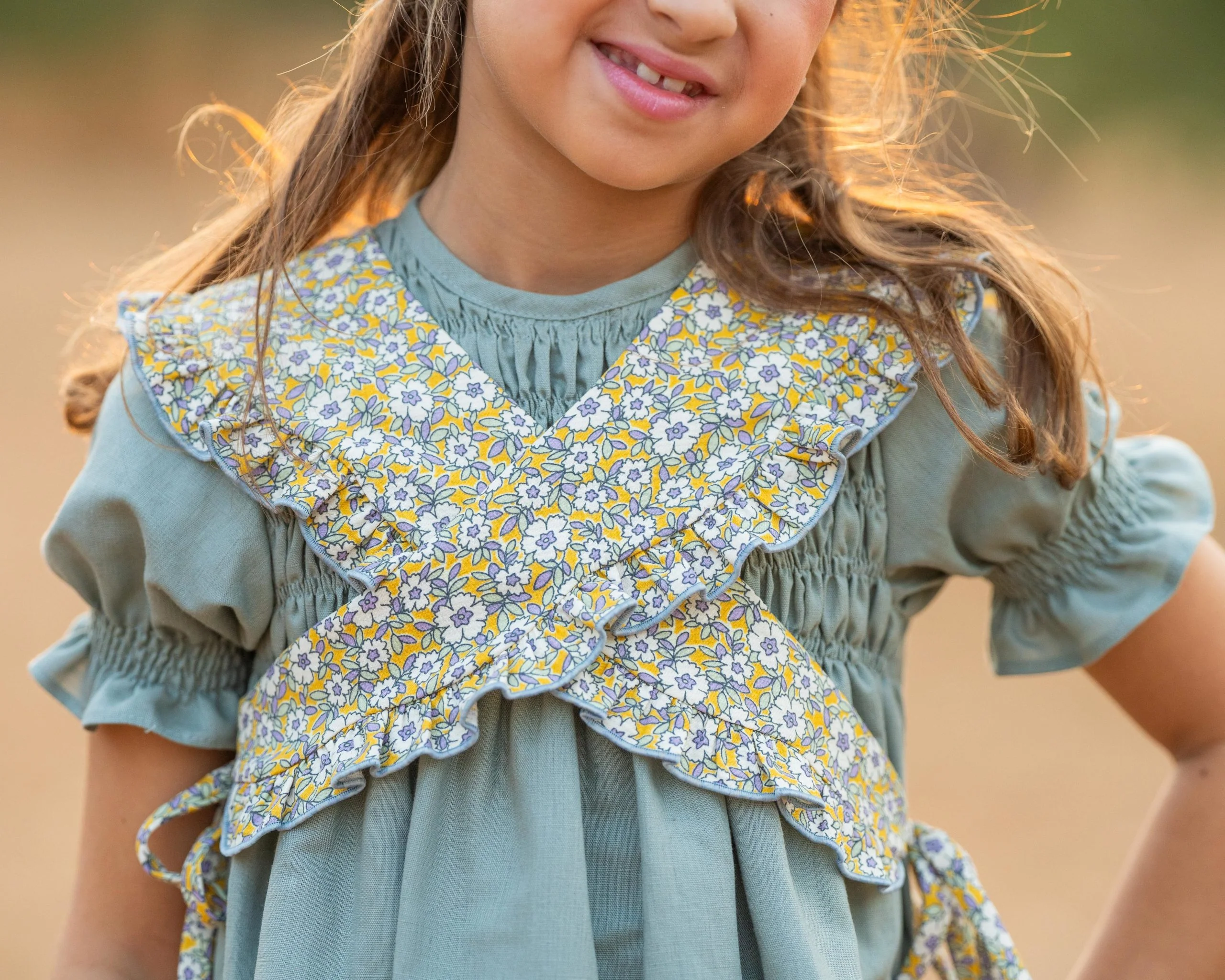 Nuestro vestido ideal para Arras es este Vestido en color verde con su pechera engomada y con la mañanita de flores mostazas, verdes y malvas que puedes poner y quitar cuando quieras. ¡así tendrás dos vestidos!